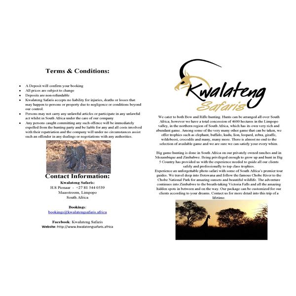 Generally, outfitters do not allow back-to-back donation hunts, so even if the description is not explicit, do not buy more than one hunt per country! If you want to string together two or more hunts, you must gain the approval of all outfitters ahead of bidding.