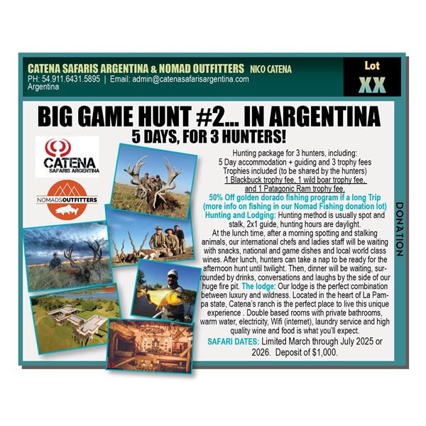 Welcome to the North Florida chapter of SCI. We're passionate about animal conservation protecting hunters' rights, and the future of hunting for us all. Please bid often and with abandon.