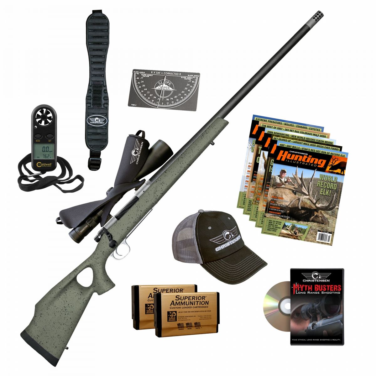 Christensen Arms Extreme Long Range Package includes the Extreme II chambered in .300 Ultra Mag. Christensen's patented carbon barrel with titanium muzzle brake, Christensen's custom carbon fiber stock, crisp 3lb trigger. Swarovski 23 4-12x50 scope with custom turrett to 900 yards. Entire rig weighs an amazing 7 lbs. So now that you have the equipment to hunt long range, join the Christensen shooting experts in Utah at their sniper ridge shooting school. They will instruct you on shooting techniques, ballistics, angled shooting and doping the wind. The school is held at beautiful Castle Valley Lodge. You will leave with confidence knowing you can go into the field with the skills you need to bag your game. Donor information: Christensen Arms, John Mogle, 435-528-7999, johnm@christendsenarms.com, www.christensenarms.com.
