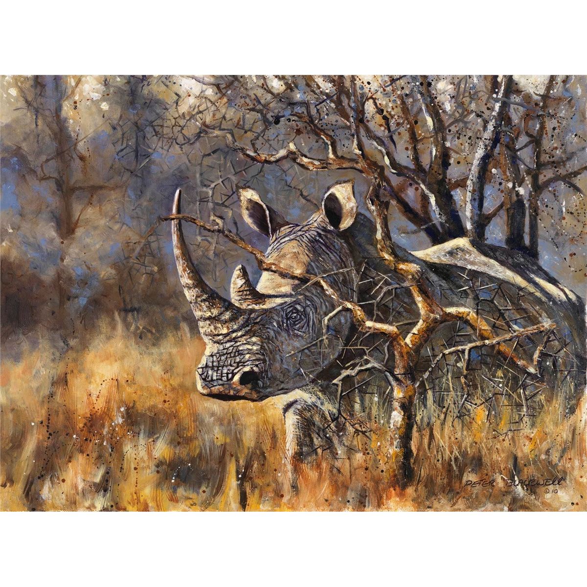 Kenyan born, Peter Blackwell has been intrigued by Africa's environments and its exceptional diversity all his life. Raised on a remote farm in Northern Kenya, the African bush was Peter's outdoor arena for entertainment and learning. Peter spends many weeks of the year in the bush, where he not only obtains the reference material necessary to create his works, but also to study his subjects. His painting style, though realistic, also suggests an unconventional flavor as he constantly strives to create original works that are anatomically accurate, yet at the same time are fresh and innovative. Each of Peter's works is an attempt to capture even brief moments of Africa's beauty, and it is his wish that each piece may offer unique insights into the Africa he knows. This dynamic piece is an original oil on canvas, framed 18" x 24" "Shadow Seeker" copyright 2010. Dallas Safari Club thanks Blackwell Wildlife Art Gallery for this 100% donation. Donor information: Blackwell Wildlife Art Gallery, Peter Blackwell, 512-909-8230, info@peterblackwellwildlifeartist.com, www.peterblackwellwildlifeartist.com.