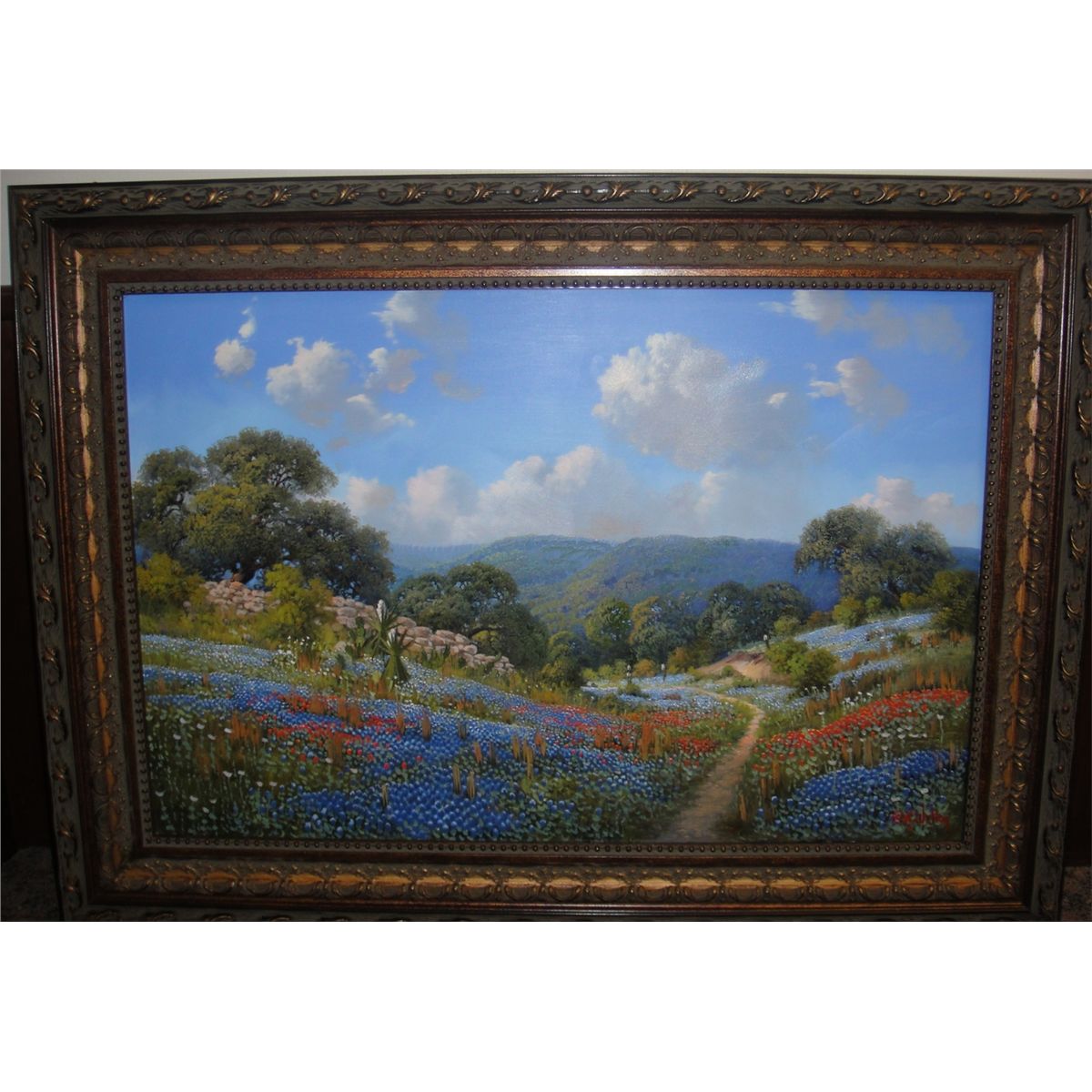 24"x36" oil painting by Texas artist Kay Walton of the Hill Country bluebonnets. This spectacular piece is framed in a traditional toned gold frame. Kay Walton has been painting professionally for thirty years. Today she is well known for her extraordinary bluebonnet paintings. She is a native Texan with a strong connection to the natural beauty of the state, and she travels often to the Hill Country and other regions to paint and renew her inspiration for new works. Dallas Safari Club thanks Kay Walton and Southwest Gallery for this 100% donation. Donor information: Southwest Gallery, Michael Downs, 972 960-8935, mike@swgallery.com, www.swgallery.com.
