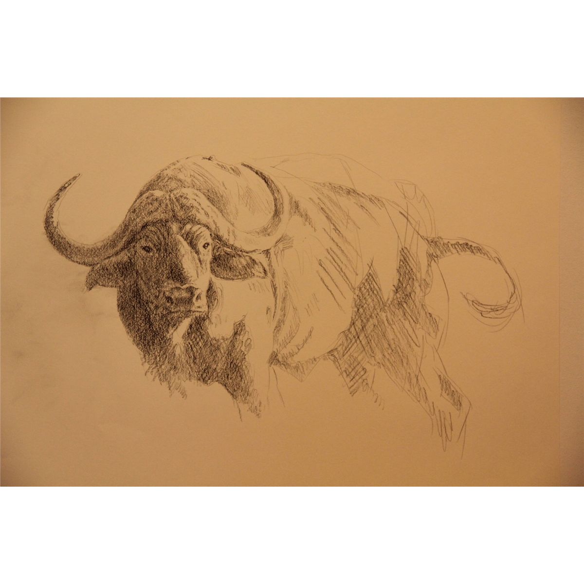 Internationally acclaimed Artist Brian Jarvi is creating an original oil painting exclusively for Dallas Safari Club. The image depicts one of Africa's most dangerous game titled "Pent Up Aggression". This initial sketch represents the first stage of the creative process. Donor information: Jarvi Studios, Brian Jarvi, 218 326-1308, brian@jarvistudios.com, www.jarvistudios.com.