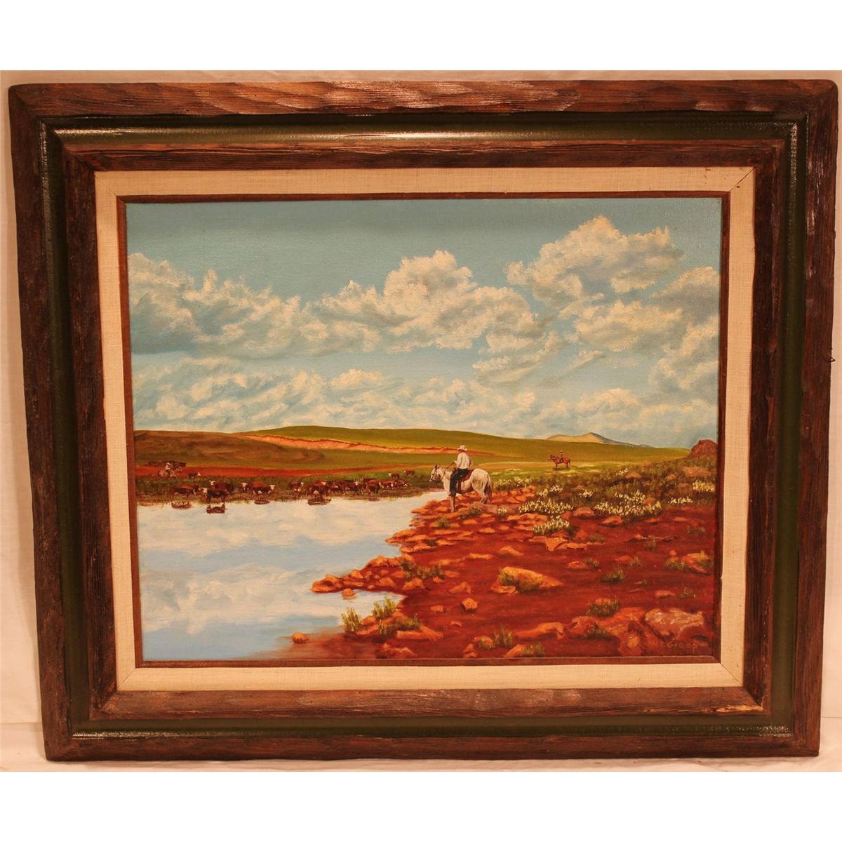 Mary Evelyn Greep Oil on Canvas "Watching the Herd" Texas artist , 20" x 15".