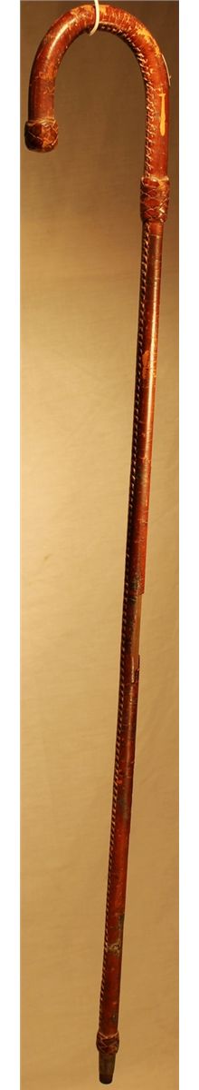 CP Shipley Horse Measuring Cane; fully leather wrapped, nicely marked and light colored with a dry cracked section.
