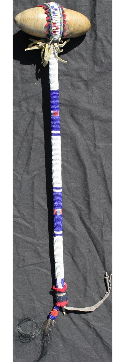 Plains Ceremonial Club w/Prehistoric Stone and fully beaded stem.