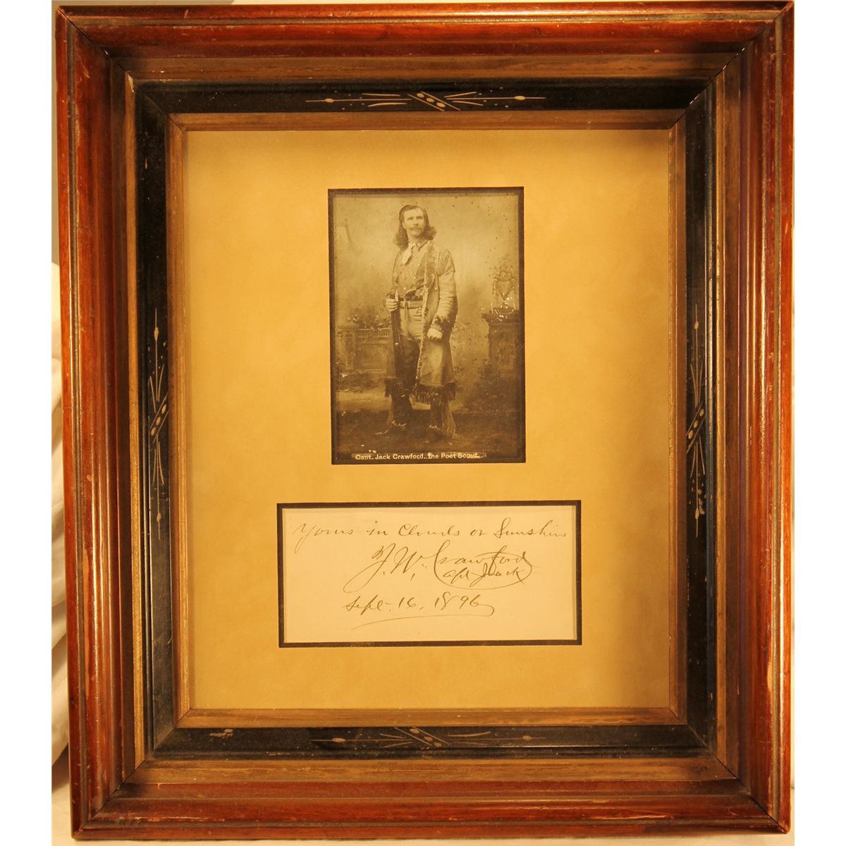 Captain Jack Crawford "The Poet Scout" Cabinet Card Real photograph in frame with inscribed and dated 1896 signature.