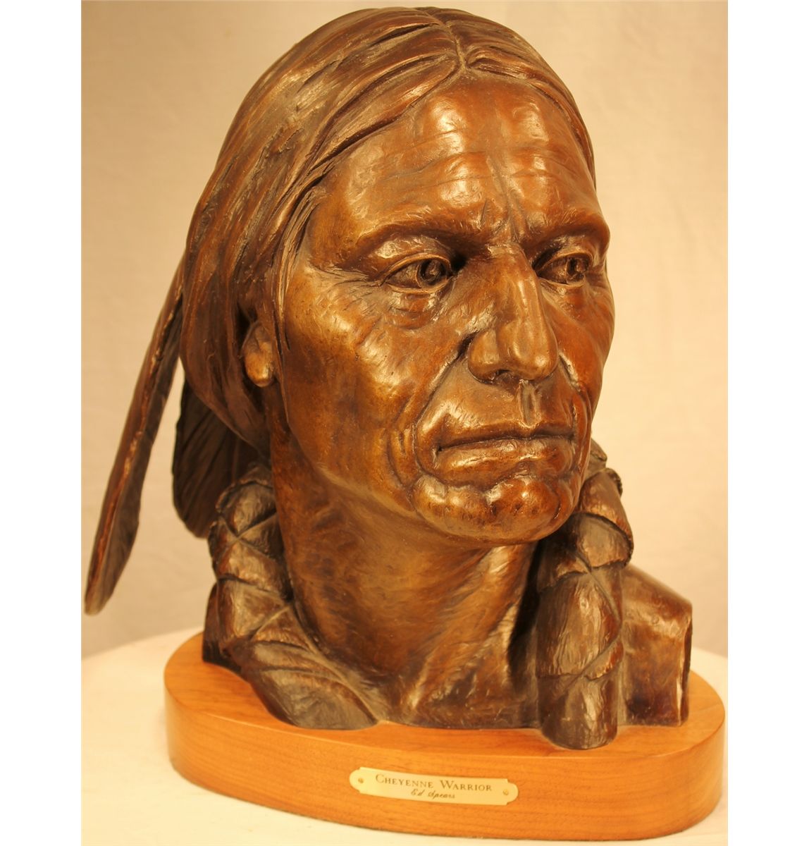Ed Spears bronze on walnut base entitled "Cheyenne Warrior". 16" high.