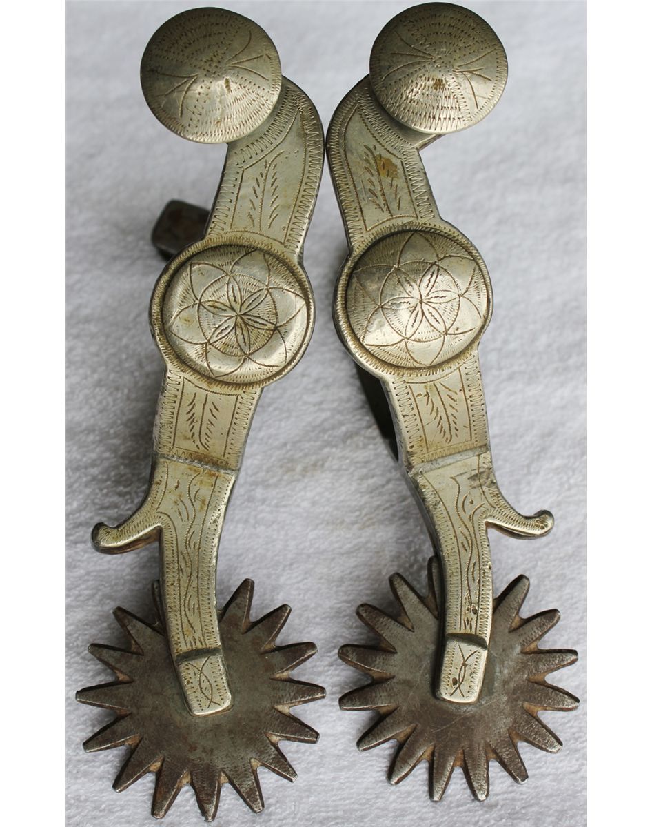 McChesney Grimmet Spurs; a super clean pair of fully overlaid Grimmets, well marked by Nocona, having 2 1/2" rowels.