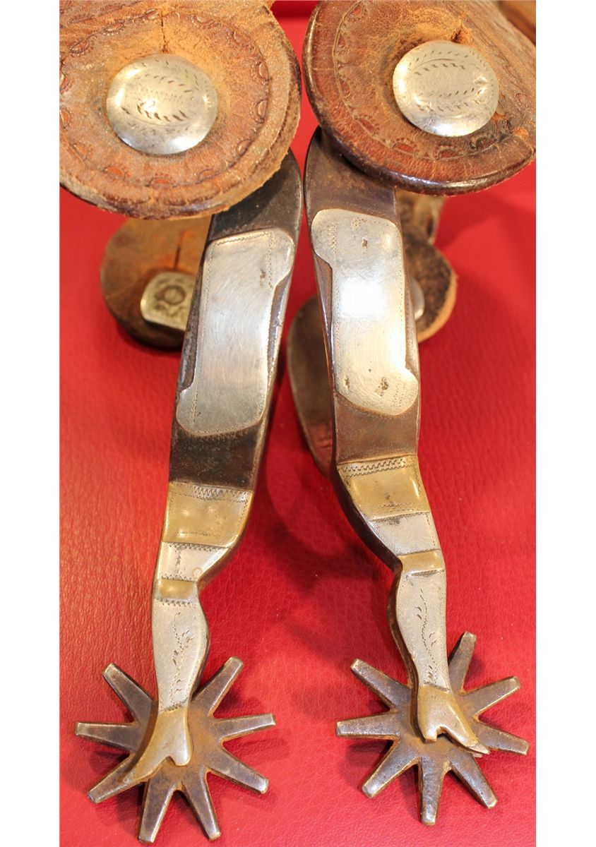 Kelly Bro's Lady Leg Spurs; marked on both spurs, single mounted with 1 1/2" rowels and original straps.