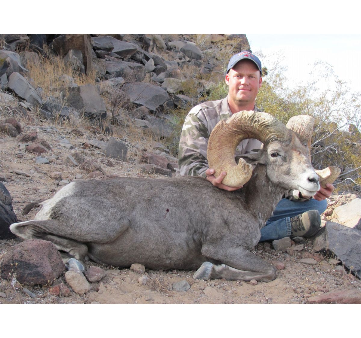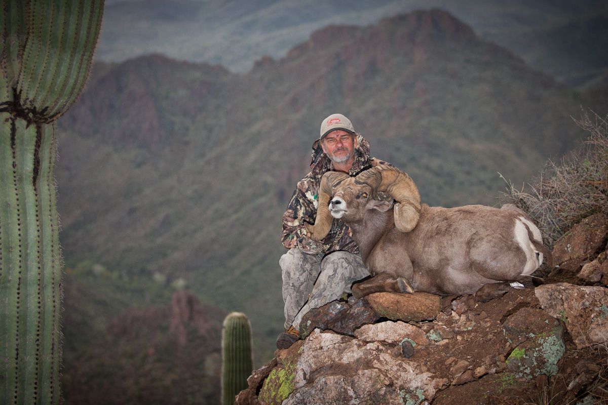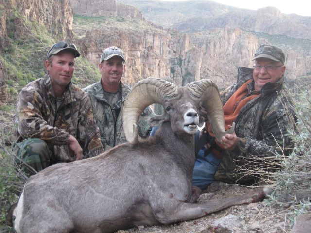 Arizona remains the premier state for Mexicana desert sheep and quality rams. Over the past decade Arizona has continued to produce an astonishing number of outstanding trophies. On average more than a dozen make the B&C book every year; at least one or more Score:s better than 180”. The previous 2011 season was another typically great year for Mexicana sheep hunters in Arizona with 17 rams scoring more than 170” and almost 40% of the overall harvest potentially making the book. Two of these majestic rams Score:d well over 180”, and one almost touched the magical 190” mark! Predictions for the 2012 and 2013 seasons are every bit as bright and there is no finer opportunity than Arizona for taking an exceptional Mexicana desert sheep. Last year, Mike Carpinito, the 2011 Arizona Auction Tag Buyer, harvested a tremendous ram in October 2011 which green Score:d 188-7/8”. The 2012 Arizona auction tag buyer, Gus Arvelo harvested another superb ram in August 2012 with and official B&C Score: of 185-1/8”.
