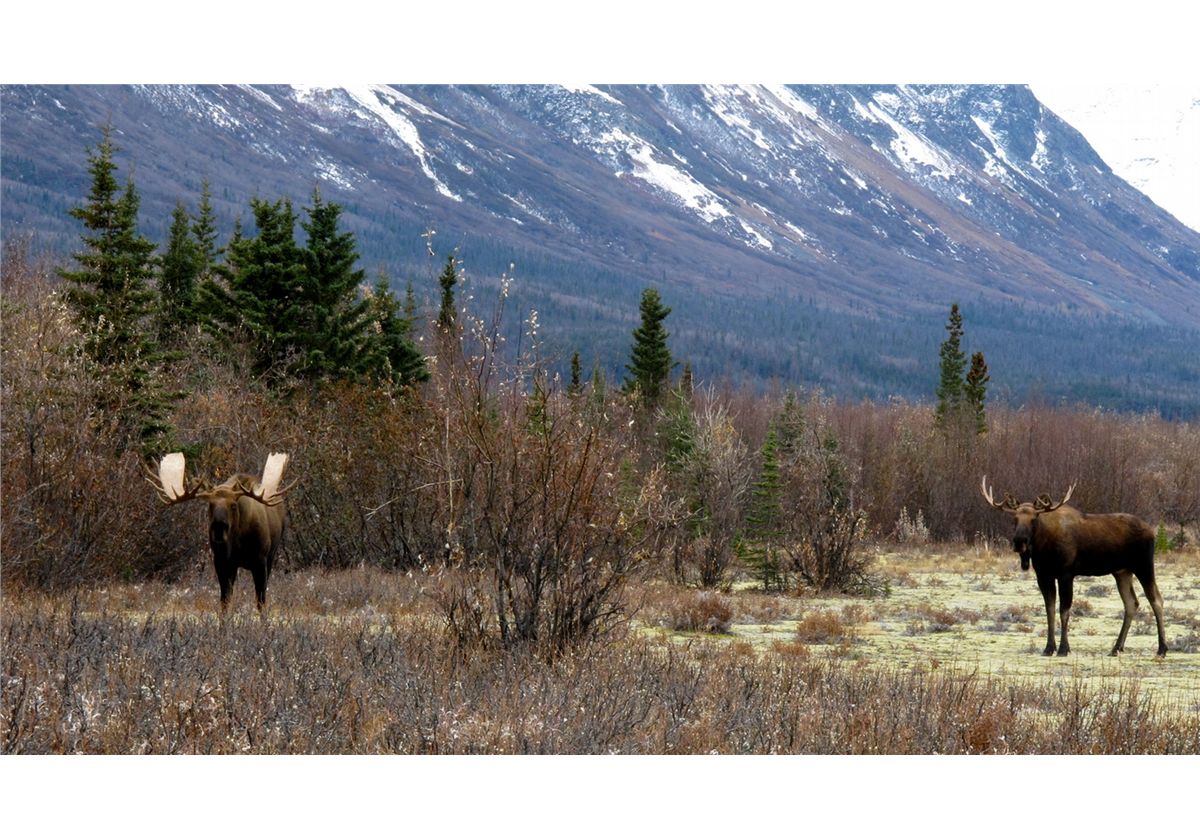 LA-34 FOUR SPECIES IN THE AK WRANGELL-ST ELIAS MTNS - MOOSE OR GRIZZLY, MTN GOAT, BLK BEAR AND WOLF