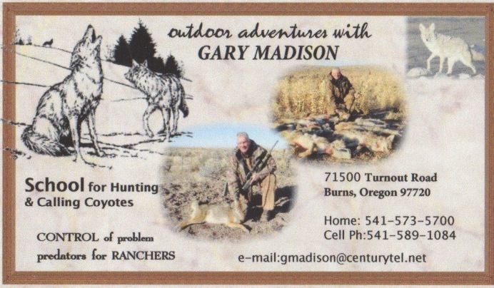Donated by: Gary Madison's School for Hunting and Calling Coyotes