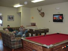 ACCOMMODATIONS: Lodge features deluxe guest rooms and lodge facilities including a game room with pool, shuffle board, foos ball, jacuzzi, sauna, and big screen tvs.
