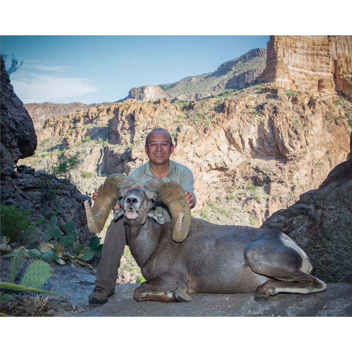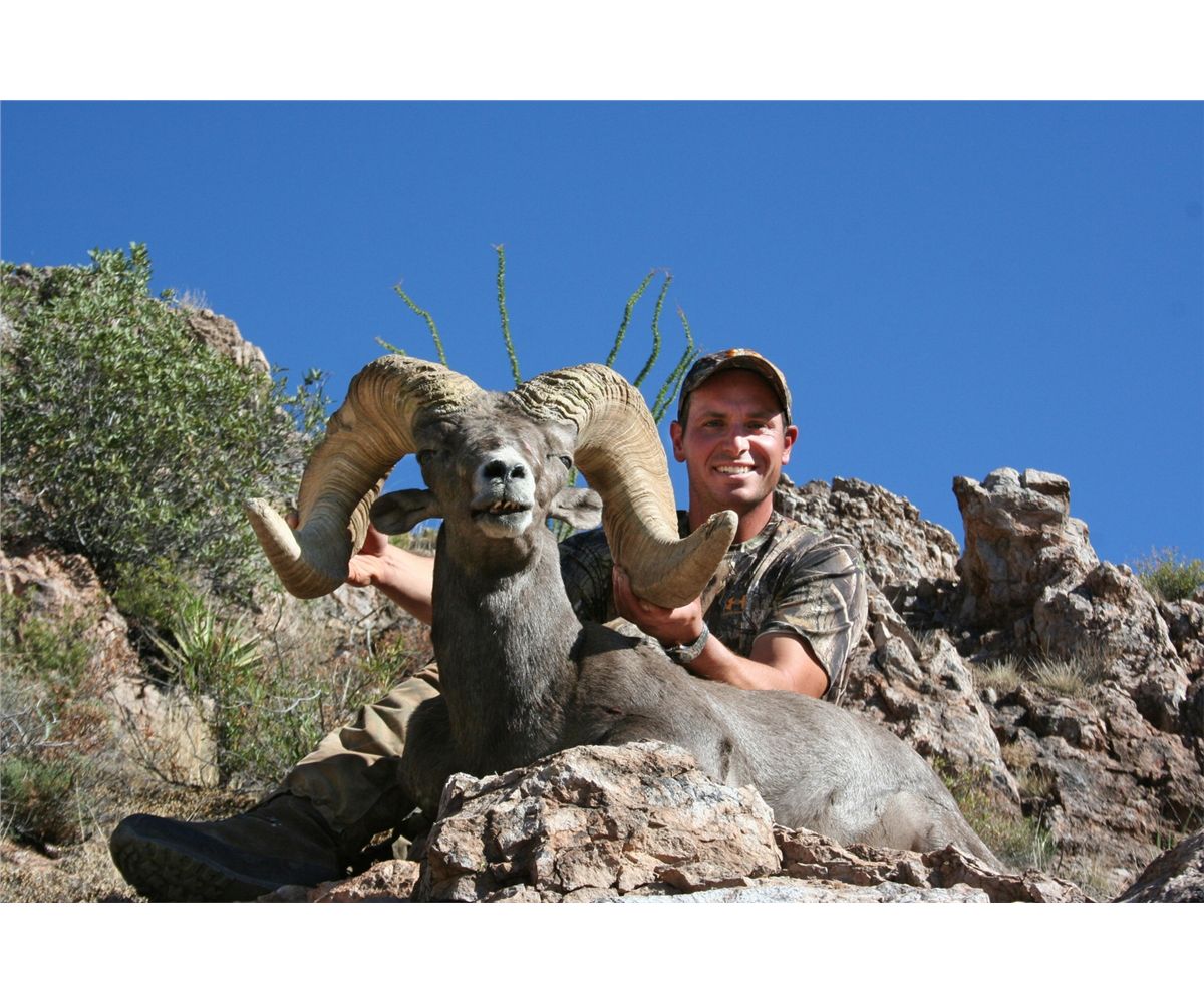 Arizona remains the premier state for Mexicana desert sheep and quality rams. Arizona has continues to produce an astonishing number of outstanding trophies; come by our booth to view video of rams still on the mountain. On average more than a dozen make the B&C book every year at least one or more scores better than 180". The 2012 season was another typically great year for Mexicana sheep hunters in Arizona with 18 rams scoring more than 168" , with 11 of those greater than 170". That’s almost 43% of the overall harvest potentially making the book. Four of these majestic rams scored well over 180”. Predictions for the 2013 and 2014 seasons are every bit as bright and there is no finer opportunity than Arizona for taking an exceptional Mexicana desert sheep. Last year, Gustavo Arvelo, the 2012 Arizona Auction Tag buyer, harvested a tremendous ram in August 2012 which green scored 186-4/8". Our 2013 auction hunter, Chris Dianda, took a beautiful 9 year old ram in August, green scoring 180-6/8".