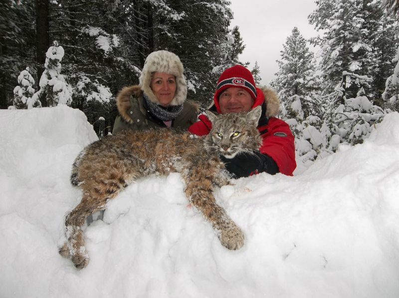 Located just outside of Kamloops, BC, Bearcat Outfitters’ area is abundant with big cats and guide outfitter Neil Findlay is dedicated to providing a quality cat-hunting adventure. These hunts are 2:1— that’s two guides per hunter, as one is needed to help manage to dogs. Success on bobcat is almost a certainty as long as there is a bit of fresh snow to work with. For smaller cats, having some fresh snow is important because they leave less sign than bigger cats. Bobcats harvested in this area in the past have weighed up to 40 pounds. Lynx are very crafty and the most difficult of the Canadian cats to harvest.