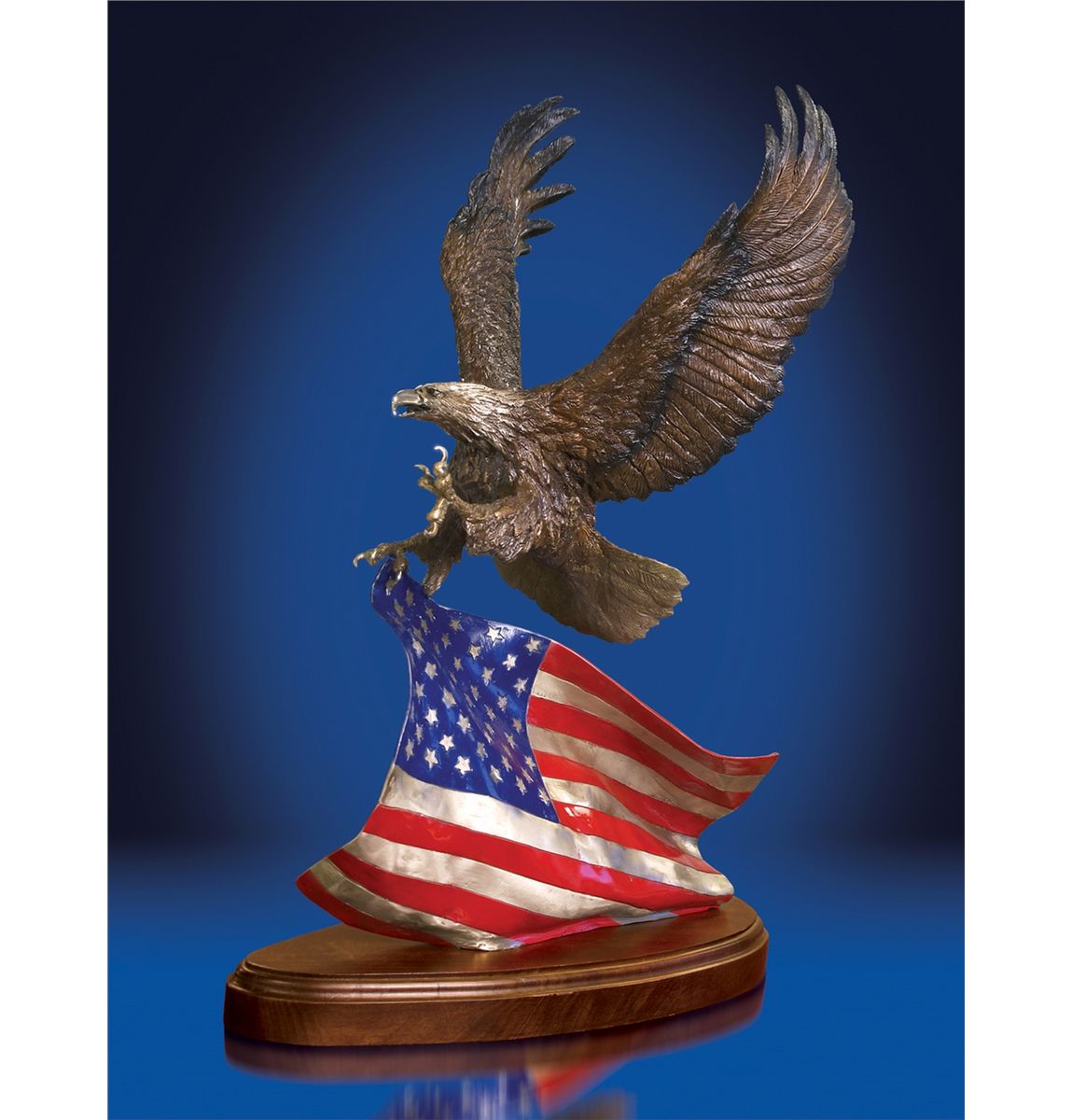 Masterpiece Investments Charitable Division is proud to present a masterpiece of renowned and prolific artist, Lorenzo Ghiglieri. This piece, titled “Spirit of America” is a 29” x 14” x 11” limited edition of 475. “Spirit of America” is dedicated to the many who represent our great nation both here and abroad; to the will to survive, to the belief in humanity, to the drive to act honorably, and the desire to make the world a better place….the defining SPIRIT OF AMERICA. A world class master sculptor, Lorenzo follows his family’s tradition of quality and excellence through visual arts. Born to a family of exceptional artists, he began designing and creating master works of art at age eleven. His sculptures have been presented to numerous world leaders. He sculpted the “Official American Bald Eagle” on display at the White House. His moving sculptures range in theme from historical to wildlife to patriotic.