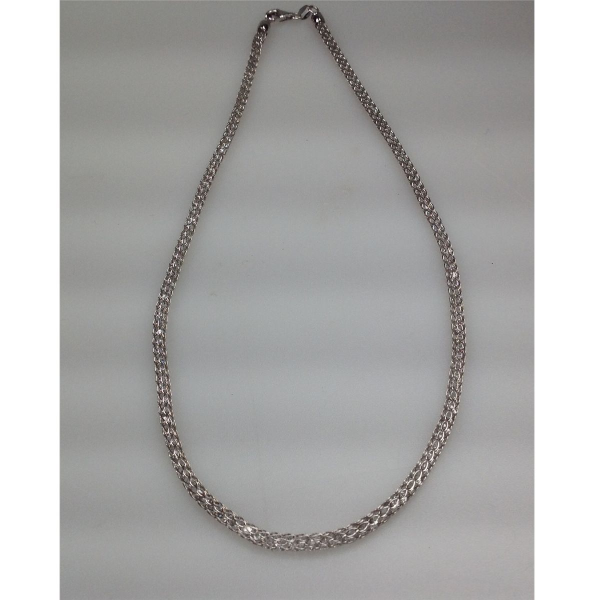This piece is a 14K white gold 16 inch handmade woven chain necklace. The necklace is filled with Australian crystals. Shenkâs Fine Jewelry is a small locally owned company that offers custom jewelry and other fine specialty jewelry pieces. Owner Noreen Shenk has been a personal jeweler for over 27 years and is a gemologist graduate. She specializes in educating clients on how to buy diamonds at the highest quality at the best price. Be sure to stop by their booth and see the many fine pieces they have to offer.