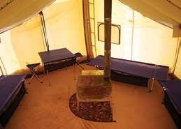 This package includes the Montana Lodge tent, a wood stove, cots, a roll-a-table and camp stools. The Montana Lodge tent is the biggest advancement in lodge tents since the canvas wall tent. The unique hexagon shape creates a spacious interior that comfortably sleeps up to six people. The five-feet side walls and nine-foot, eightinch ceiling height add ample headroom. A heavy-duty 1.375-inch diameter aluminum frame supports the well-balanced structure, ensuring a high level of support and stability. The camp stove has been moved into the middle of the tent just like a campfire in the center of every campsite. The roof is made of 10.9-ounce white cotton duck treated with fire retardants, waterproofing and mildew inhibitors. The floor sides and end walls are made of Relite™ with the same treatments as the canvas top. Relite is a polyester- based material that is extremely lightweight, durable and more resistant to destructive ultraviolet rays than traditional nylon. Two large zippered doors with screens allow easy access. Other features include four windows and a zip-in floor with a zipper opening in the center for camp-stove placement. Montana Canvas has contributed more than $131,000 to the RMEF’s Partners in Conservation program.