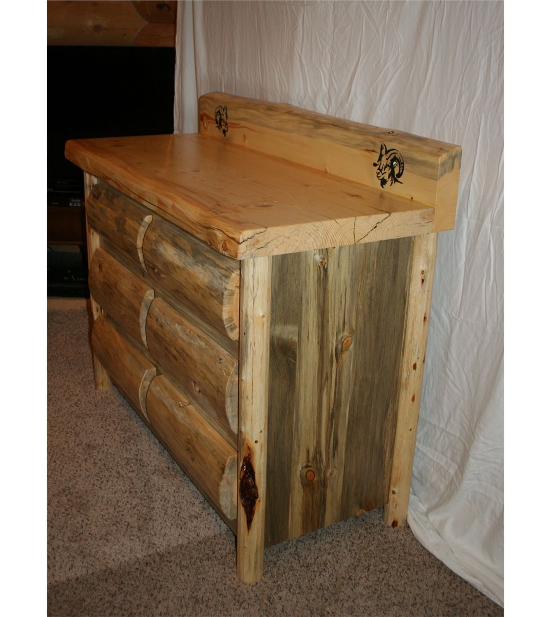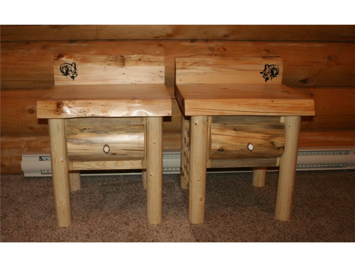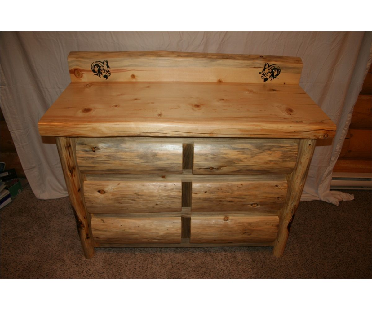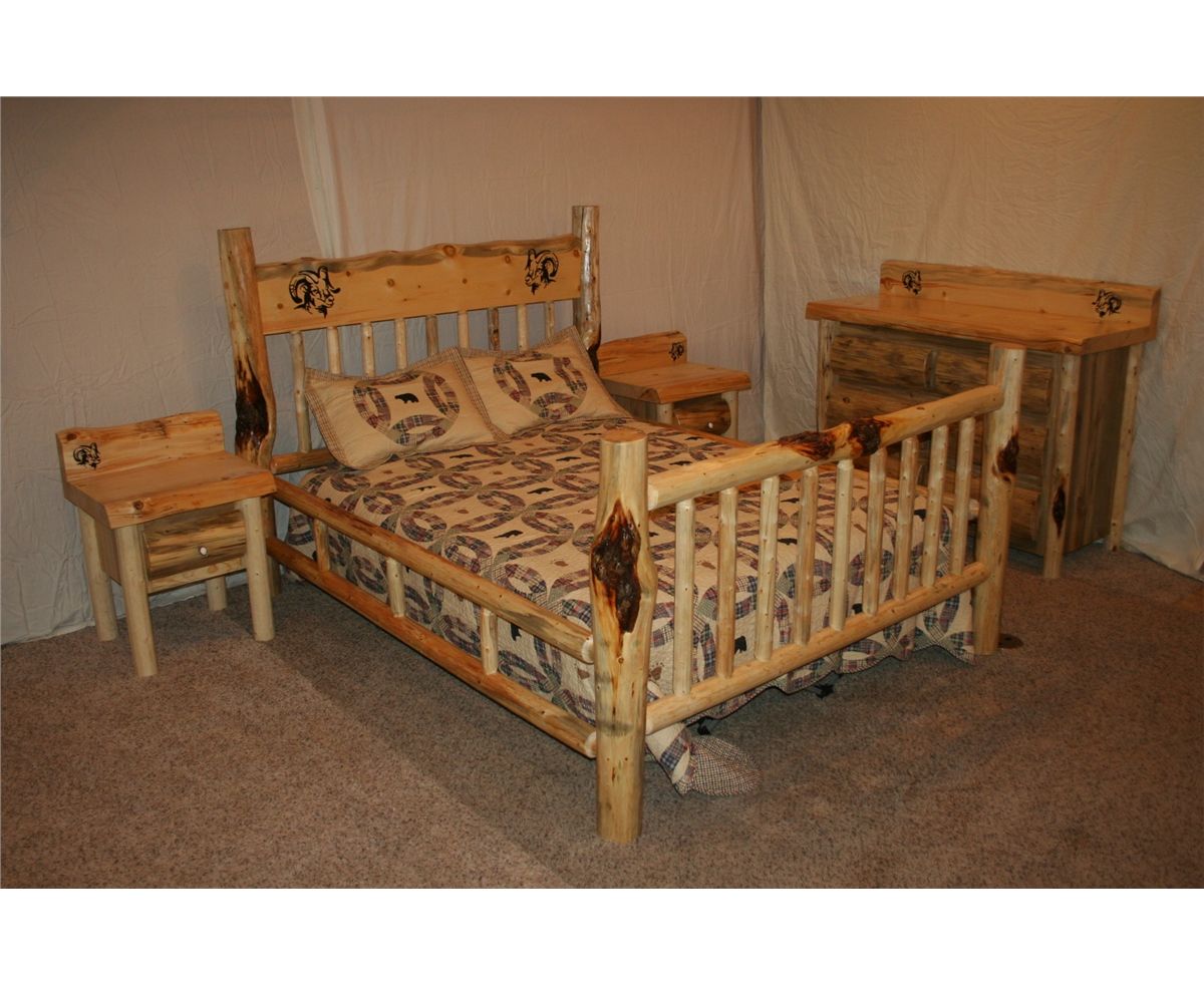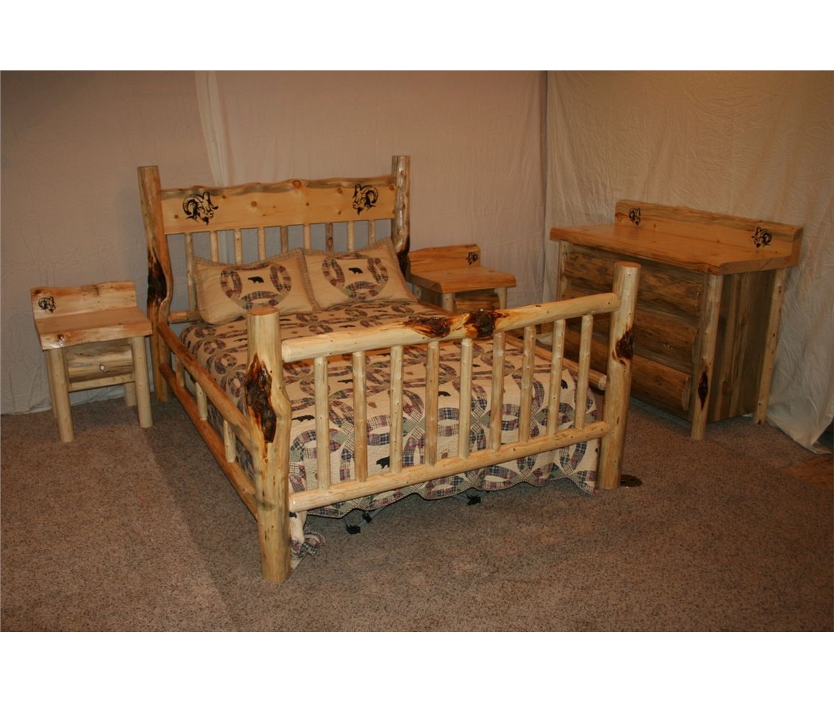 Lot 32 BEAUTIFUL ONE OF A KIND LOG QUEEN BEDROOM SET (INCLUDES 2-NIGHTSTANDS W/WILD SHEEP TRACKS & 6 DRAWER