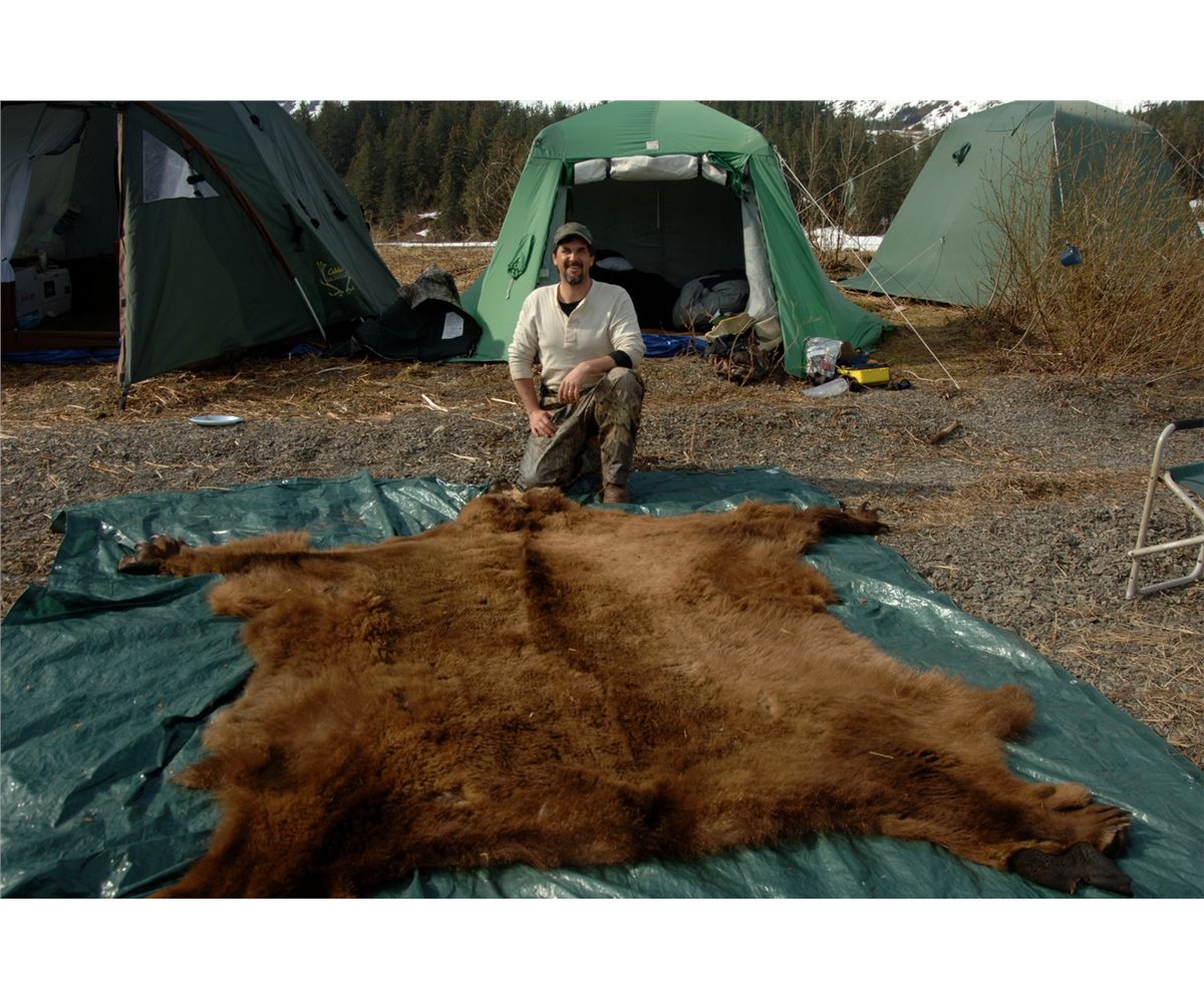 Amenities included: You will be supplied an air flight to and from spike camp, tent, food, cot, and spotting scope if needed. Peter will also prepare the hide for your return home and have the hide sealed with ADFG in Cordova.
