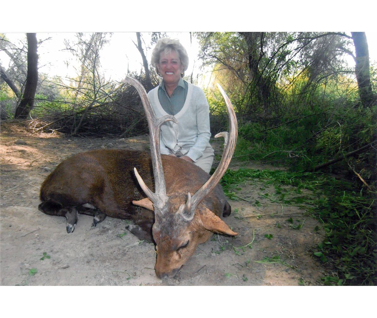 This hog deer hunt from Moro Game Reserve for one hunter in Karachi includes airport transfers, rifle hire, room & board, trophy, field preparation of trophy, and services of the camp staff. Non-hunters may be added at a price of $300 per person per day. The hunt can be upgraded to take a black buck, a jackal, a boar, an Axis deer, or a nilgai. Contact Salim Khan for details. Weapons: wide range or rifles. The donation does not include tips & gratuities, any stay or expenses in Karachi, any other expenses, or any observers, and must be taken January, February, or March 2015/2016.