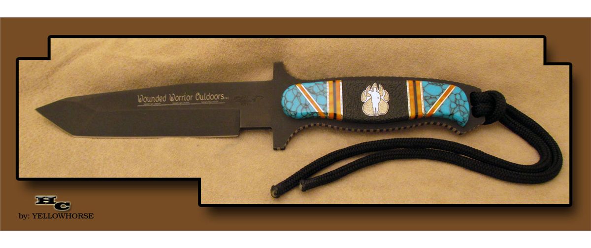 Donation: A one of a kind custom knife handmade by artist David Yellowhorse. This knife was carried by Special Operations and Medical Teams on the battlefields of Afghanistan in support of Wounded Warrior Outdoors and Wild Sheep Foundation from January 2014 until October 2014.