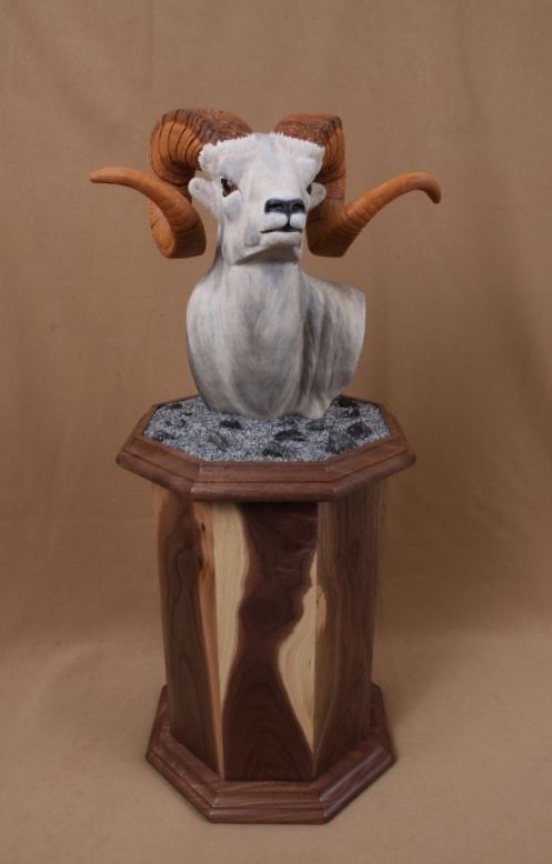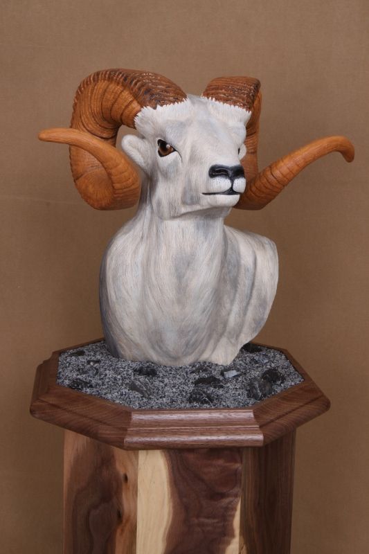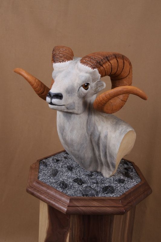 John Blank is a Michigan artist that produces life-like wildlife wood carvings. Each piece of John’s work is hand carved and hand painted. This donation is a 26” high x 12 ½ ” wide basswood carving of the Chadwick Ram bust on a dark walnut base with the ECWSF logo. John notes that from starting carving to finishing painting he has about 200 hours into this fine work of art. If you are a collector of wildlife hand carvings this piece should not be over looked.