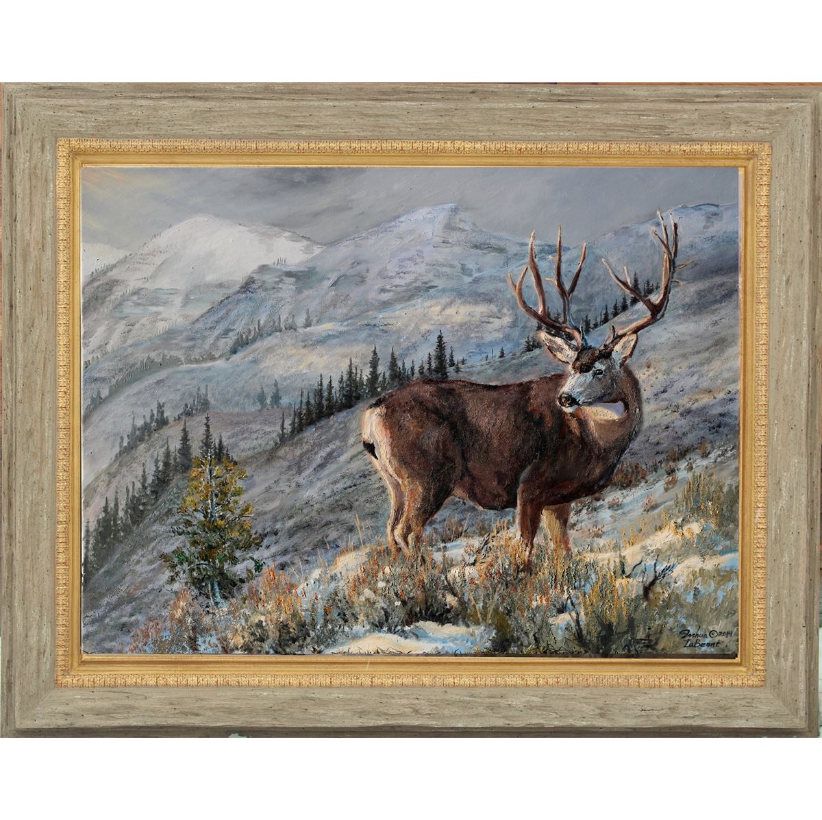 The buck that inspired this painting is a Wyoming buck that has been photographed several times and is still alive and growing today.