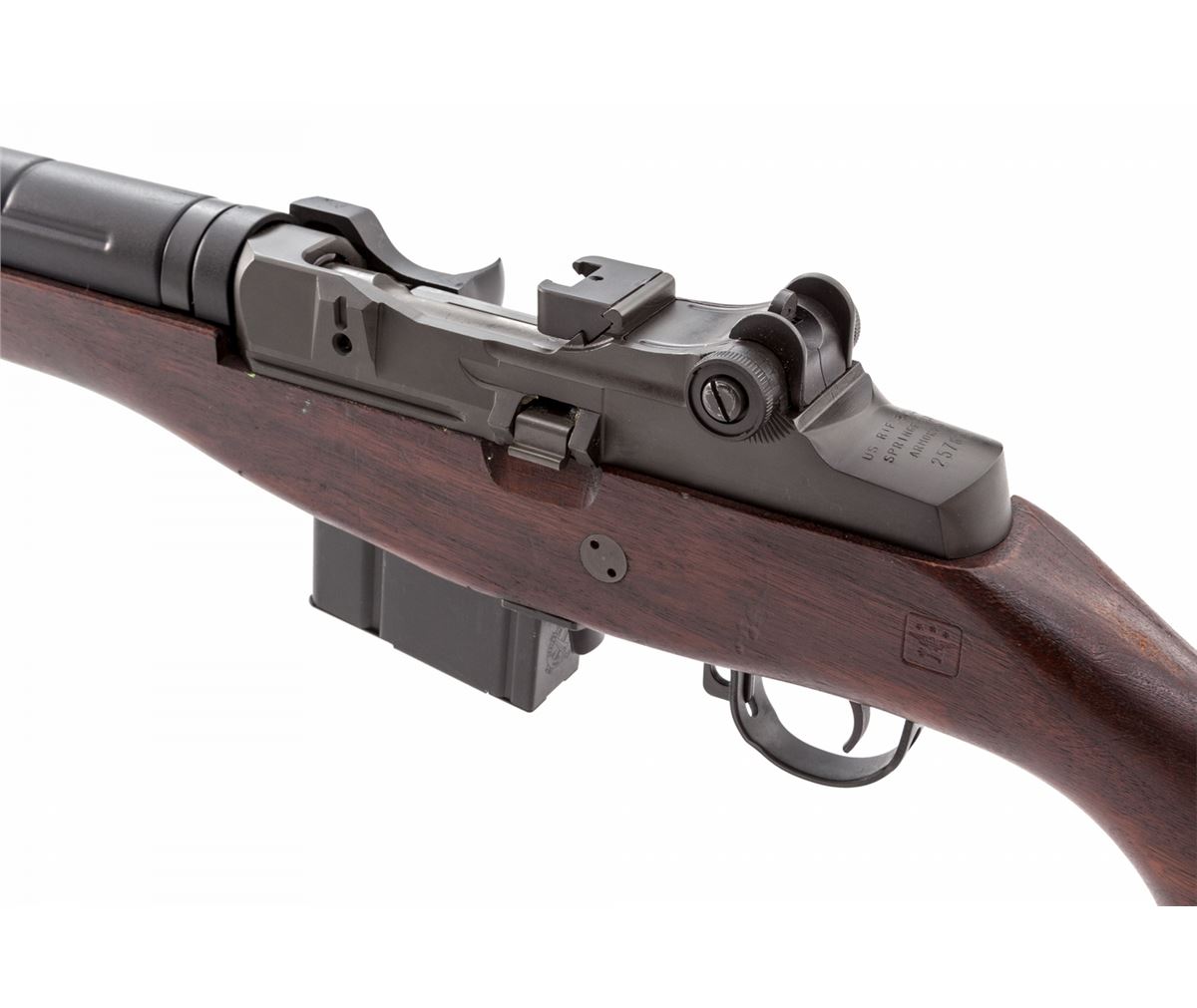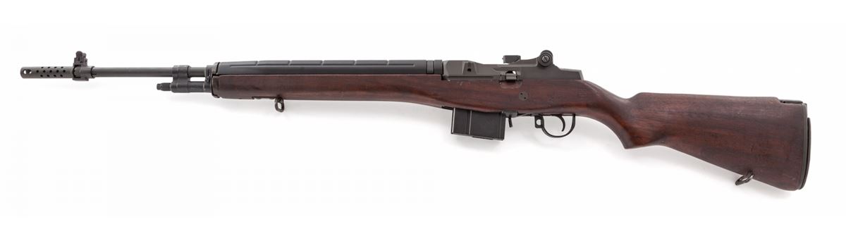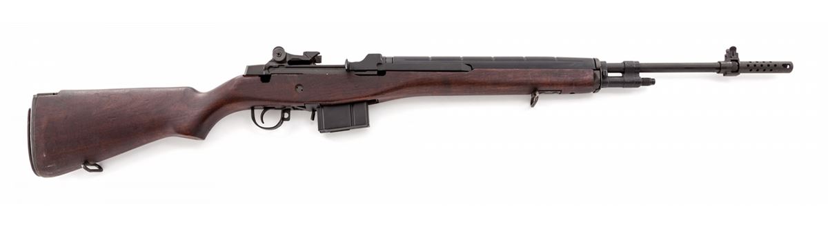 California Legal Springfield M1A Semi-Automatic Rifle, #257679, .308 cal., 24'' compensated barrel, parkerized finish, GI cartouched M14 stock, with one ten-round magazine. Condition is excellent showing little use. GI stock with light scuffs and dings. Est.: $1,000-$1,500. (Modern)