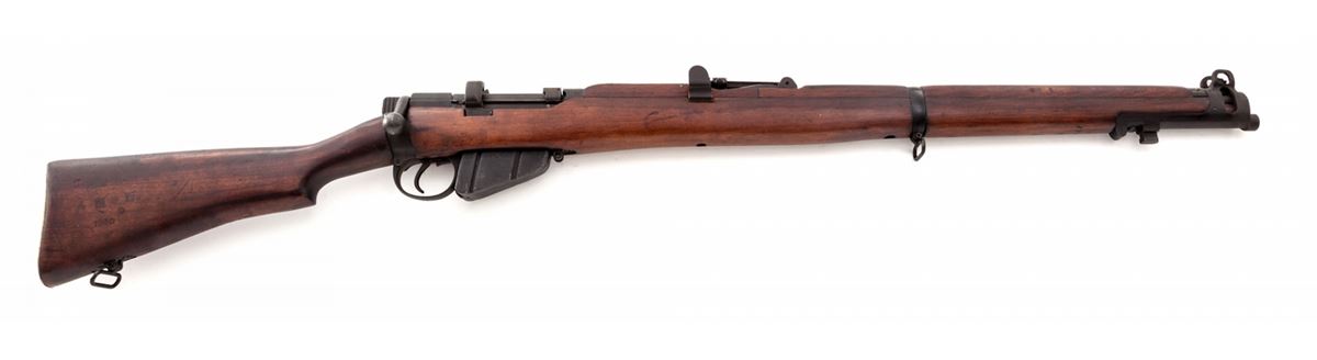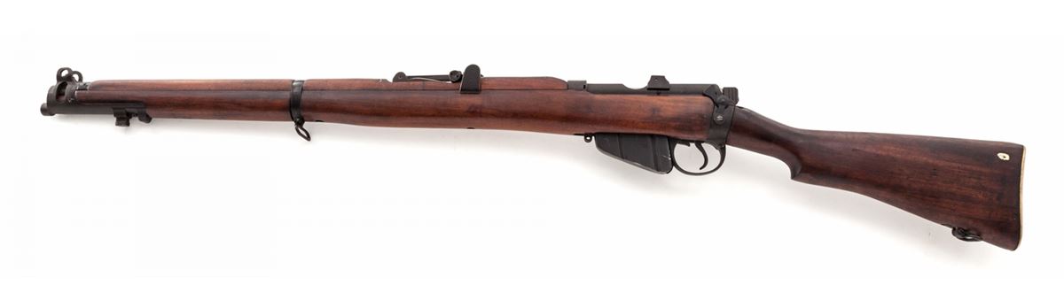Australian SMLE No. 1 MK III* Bolt Action Rifle, by Lithgow (1941), #B77356, .303 cal., 25'' barrel, parkerized finish, English hardwood stock, with brass buttplate. Condition is excellent showing only light handling marks, with crisp action and bright bore. The classic ANZAC battle rifle from the Western Desert campaign. Est.: $500-$750. (C&R)