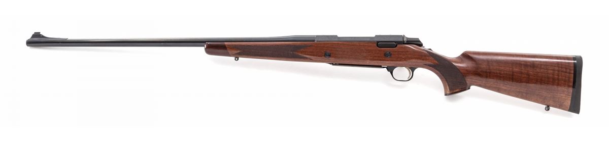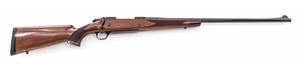 Browning Medallion Grade A-Bolt Bolt Action Rifle, #31813NZ217, .375 H&H cal., 26'' barrel, blue finish, factory checkered walnut stock. Condition is excellent with light marks from handling, and small scratches near receiver top flat from previous scope installation (easily covered with new scope). Action is crisp, bore is bright. Est.: $800-$1,200. (Modern)