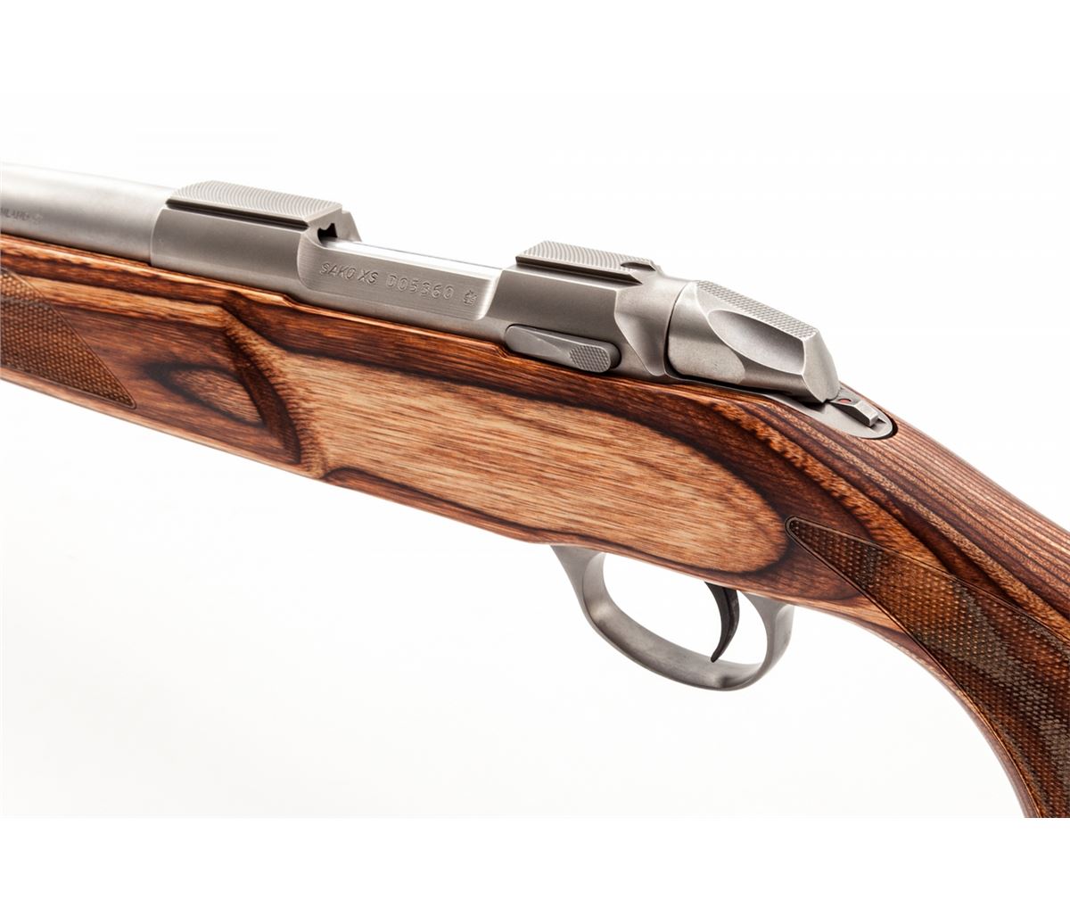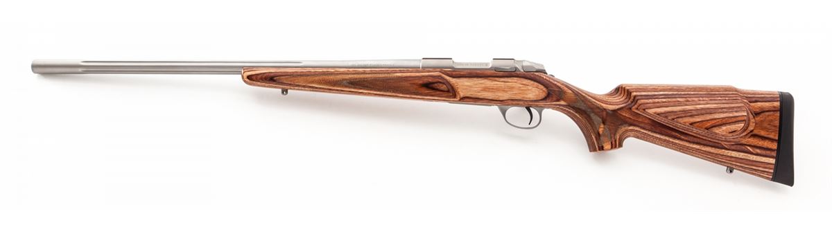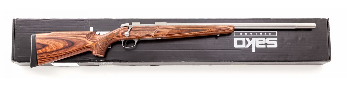 Sako Model 85 XS Varmint Bolt Action Rifle, #D05360, .223 Rem. cal., 23-5/8'' partially fluted barrel, stainless steel receiver and barrel, laminated checkered pistol-grip wood stock, with one (1) magazine, loose sling swivels, tool and gun lock, in original box with matching end label and owner's manual. Imported by Beretta U.S.A. Condition is excellent, remaining new and unfired. Retails @ $1,949.95. Est.: $1,200-$1,500. (Modern) (Field Time)