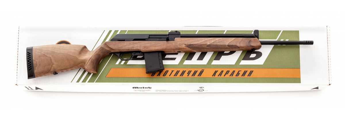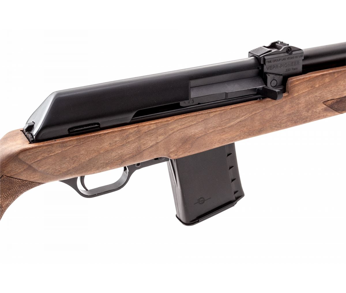 Vepr Pioneer Semi-Automatic Rifle, #HB3493, .223 Rem. cal., vented 21-5/8'' barrel, black finish, checkered pistol-grip walnut stock, open rear sight, semi-hooded front sight, with two (2) magazines and cleaning rod, in original box with matching end label, and owner's manual. Imported by FIME Group, Las Vegas, NV. Condition is excellent, remaining new and unfired. Retails @ $1,099.95. Est.: $600-$800. (Modern) (Field Time)