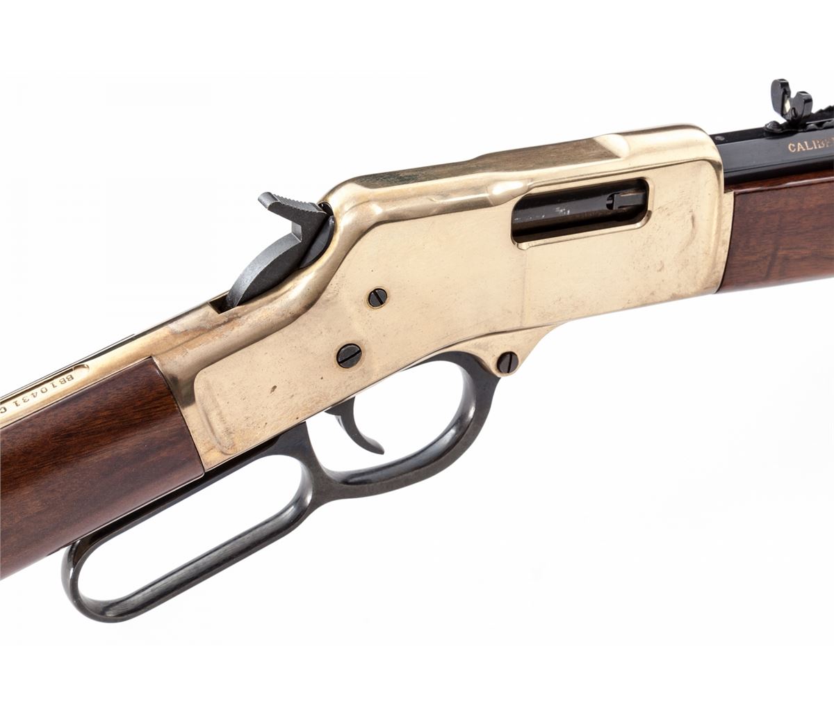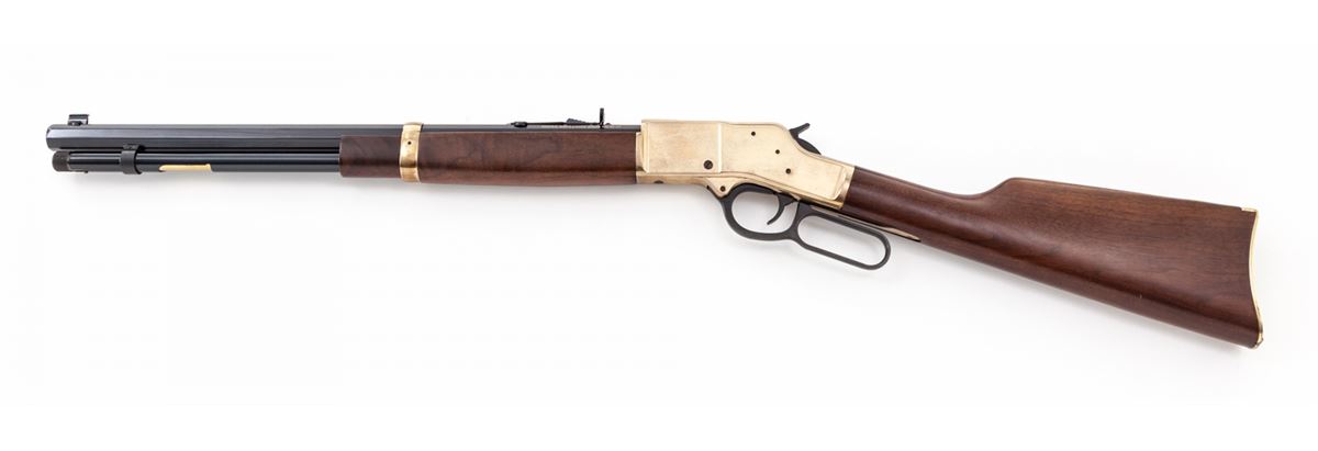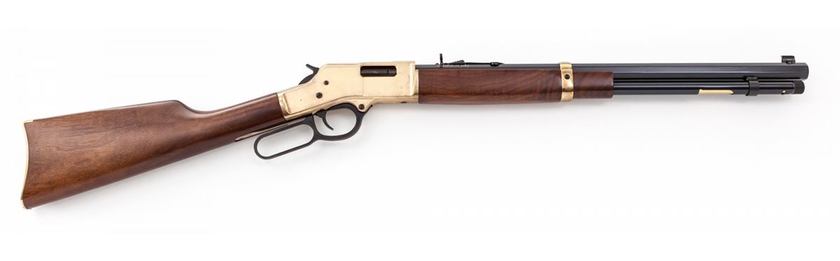 Henry Repeating Arms Model H006C Lever Action Rifle, #BB10431C, .45 Colt cal., 20'' octagonal barrel, blue and brass finish, walnut stock and handguard, in original box. Condition is excellent showing just light marks from handling. Est.: $500-$750. (Modern)