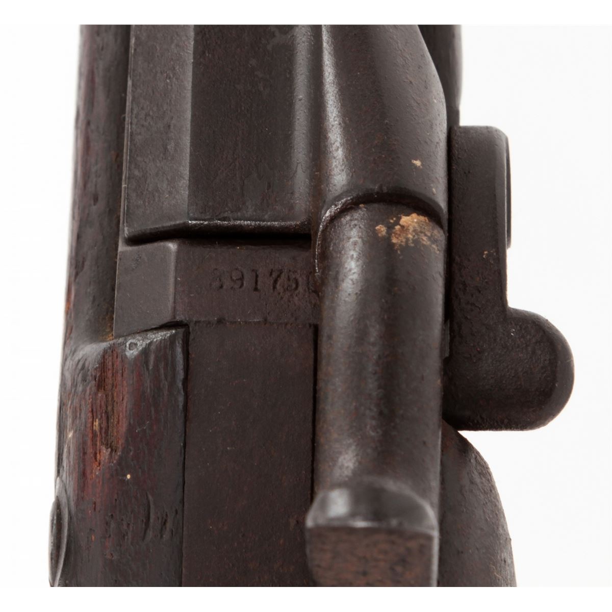 U.S. Model 1884 Trapdoor Rifle, by Springfield, #391756, .45-70, 32'' barrel, originally with blue finish, walnut stock. Condition is about good with moderate to heavy patination overall. Sight elevator and firing pin are frozen. Stock with moderate to heavy scuffs and scratches. Action is in good working order, bore is fair. A nice clean-up project gun. Est.: $200-$400. (Antique)