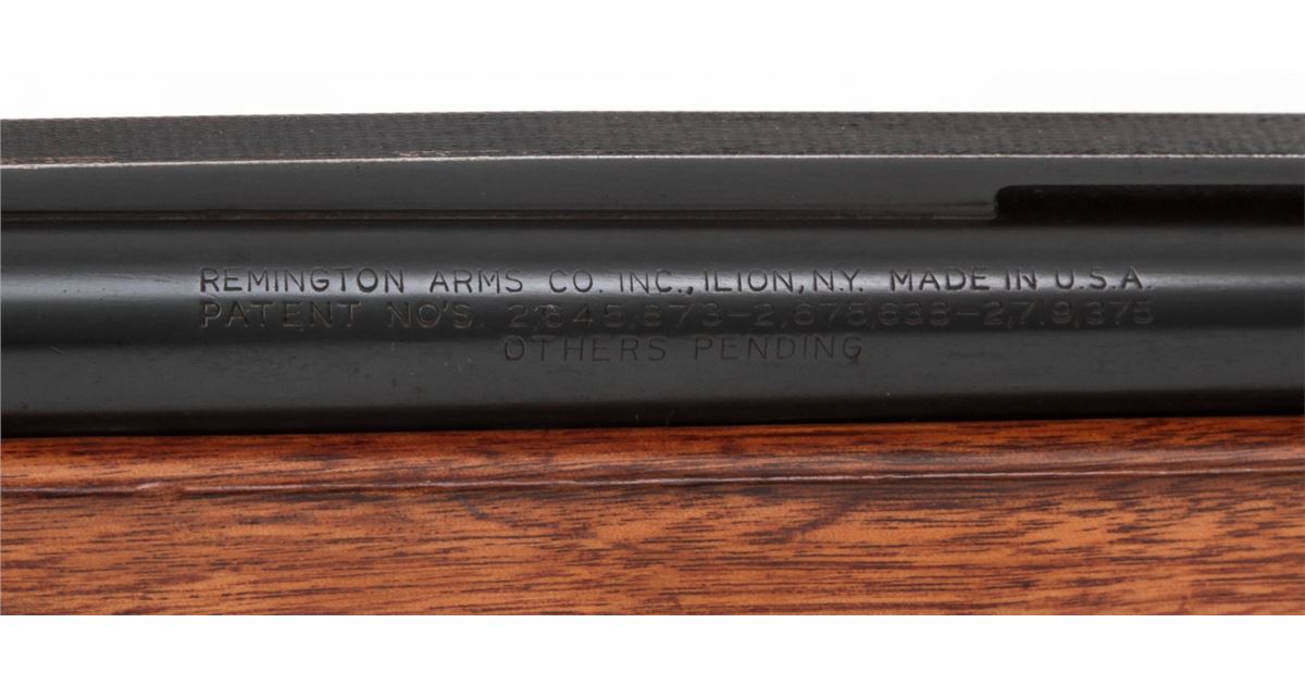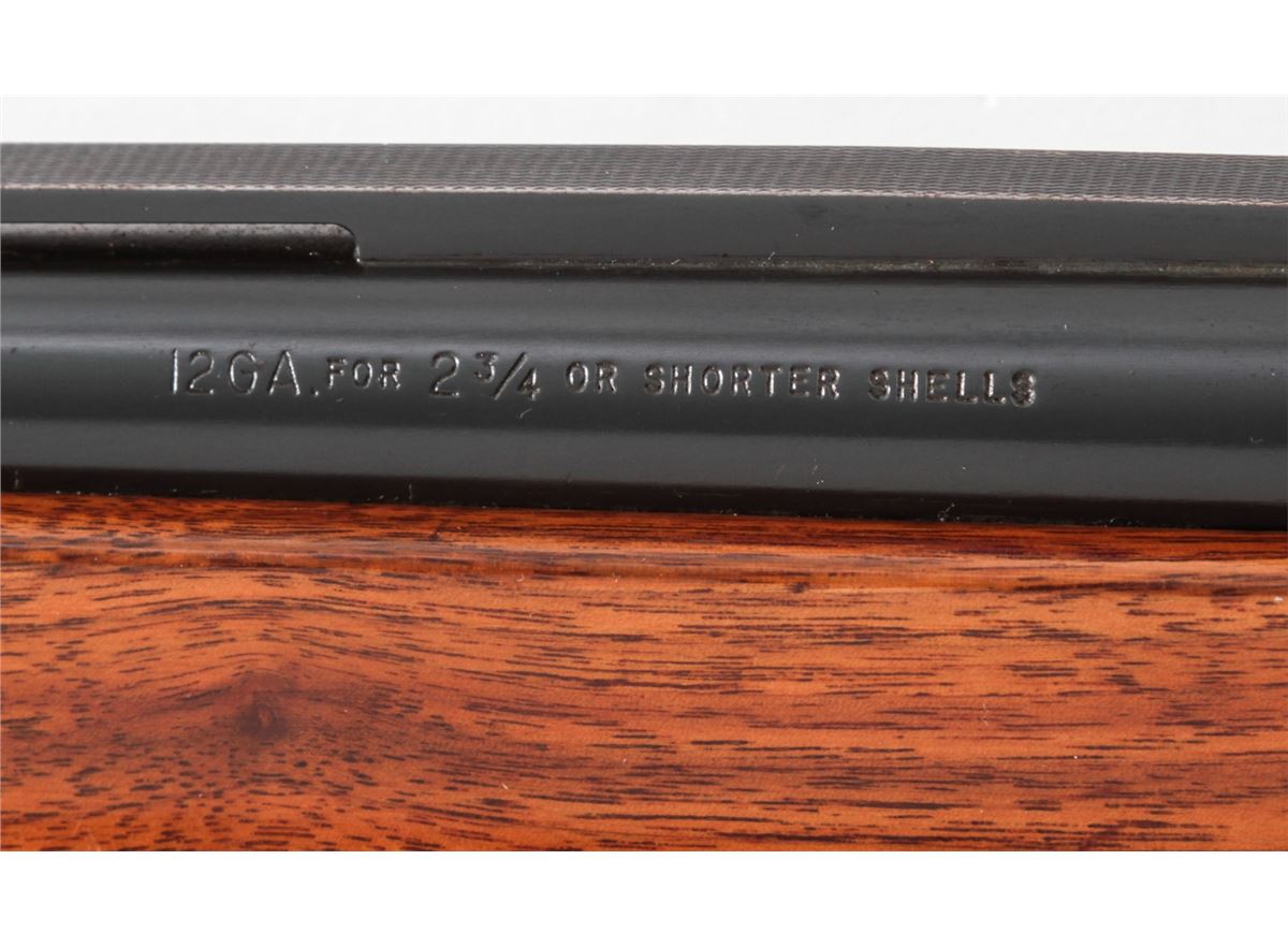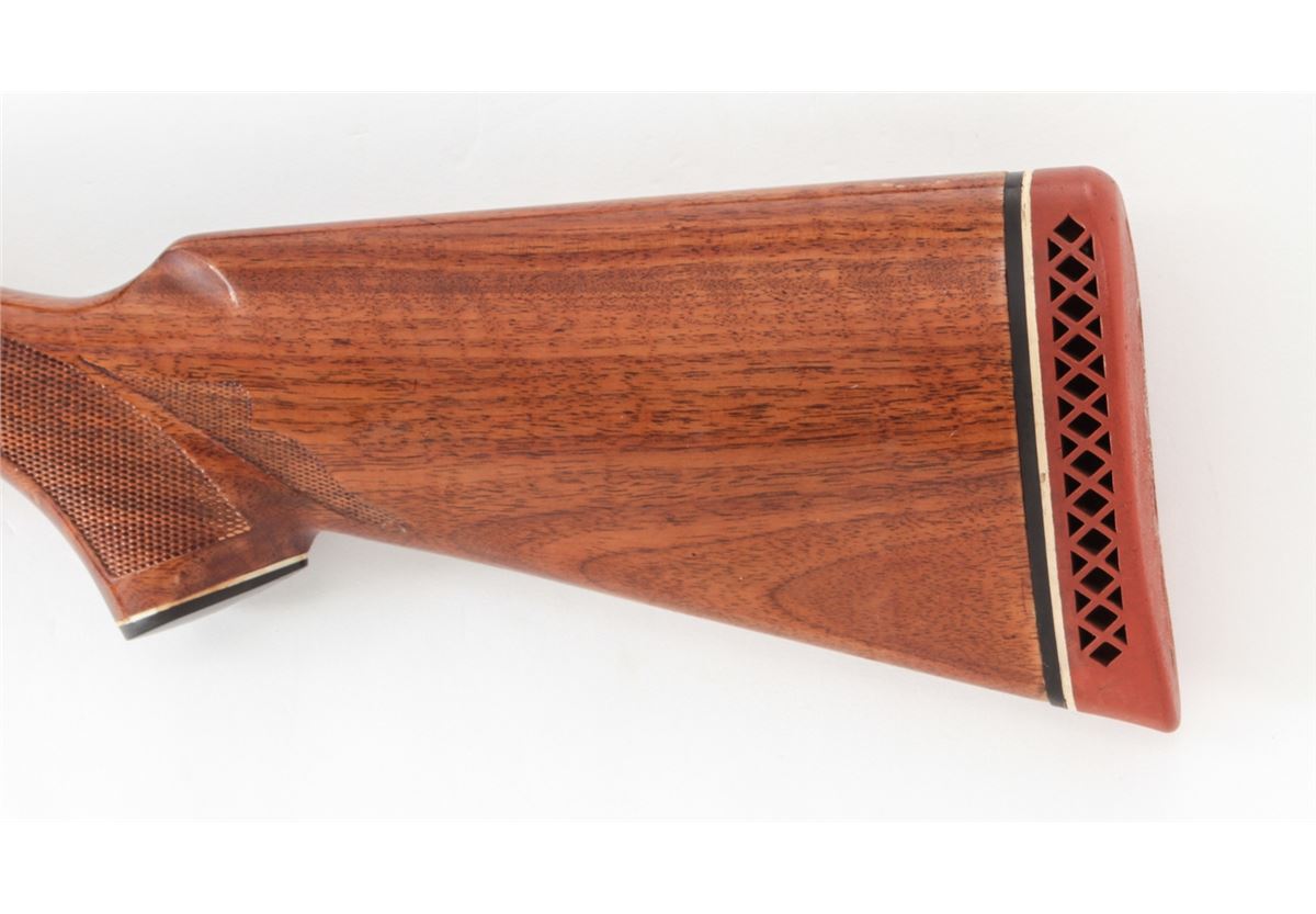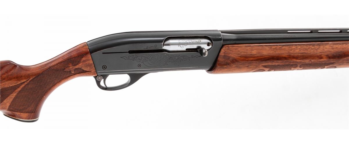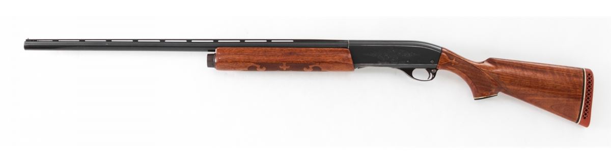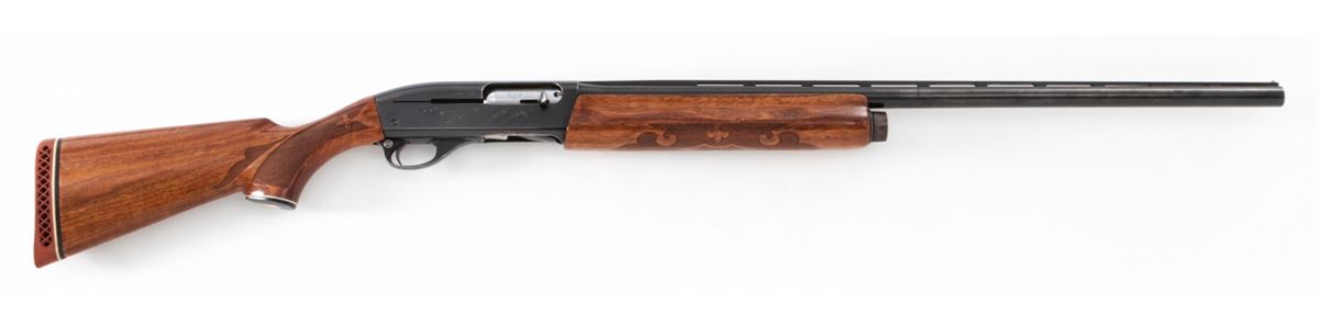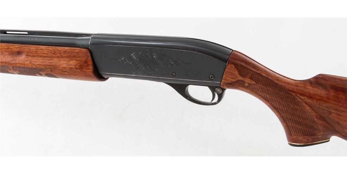 Remington Model 1100 Semi-Automatic Shotgun, #133712V, 12 ga., 27-1/2'' vent rib barrel for 2-3/4'' shells, choked Full, blue finish, pressed checkered walnut stock, with Whiteline red rubber butt pad. Condition is near excellent retaining approx. 94% original blue. Stock with light scuffs. Action is crisp, bore is bright. Est.: $300-$500. (Modern)