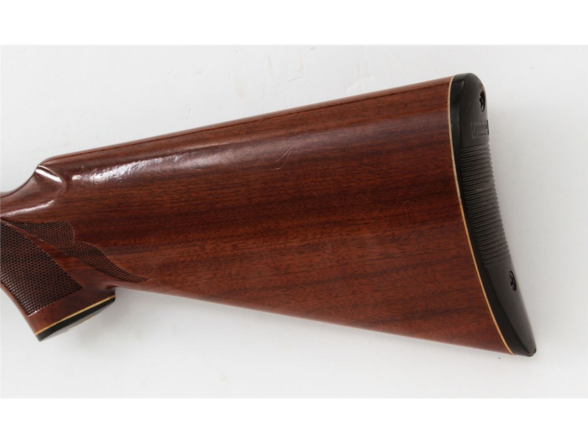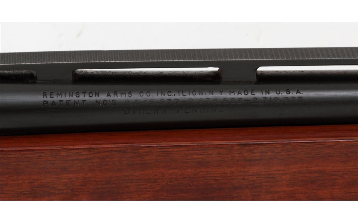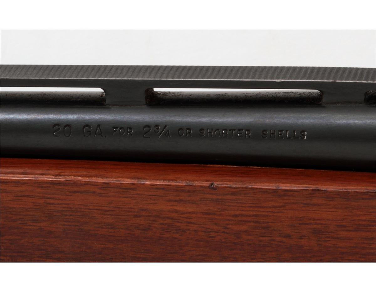 Remington Model 1100 Semi-Automatic Shotgun, #207527X, 20 ga., 25-1/2'' vent rib barrel for 2-3/4'' shells choked Imp. Cyl., blue finish, pressed checkered walnut stock. Condition is near fine retaining approx. 94% original blue with light scuffs and scratches. Stock with light general handing marks from field use. Crisp action, mirror bright bore. Est.: $300-$500. (Modern)