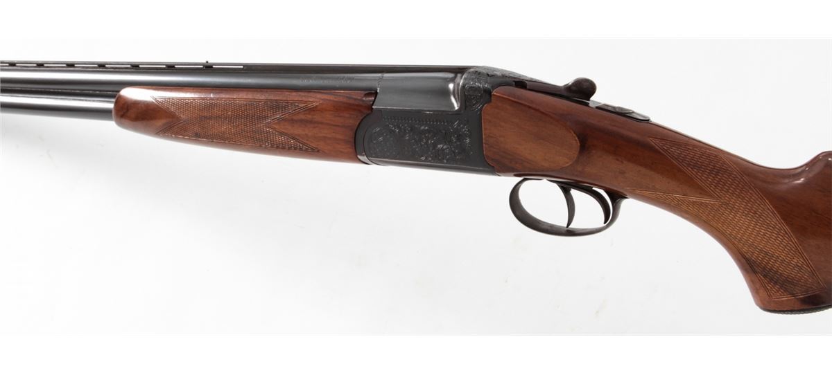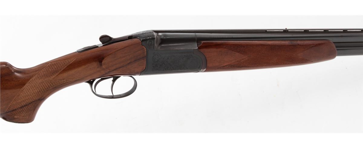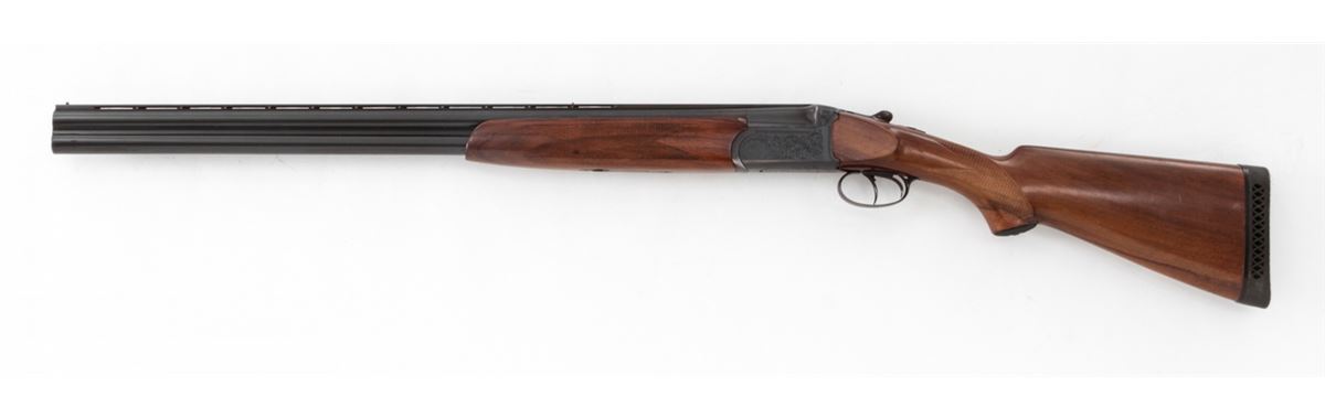 Italian Model 2036 Over/Under Shotgun, marked Universal Firearms, #17564, 12 ga., 28'' vent rib barrels choked Full./Imp., blue finish, double triggers, roll-engraved frame, checkered European hardwood stock. Mfg'd in Brescia, Italy. Condition is fine showing light field use. Est.: $250-$400. (C&R)
