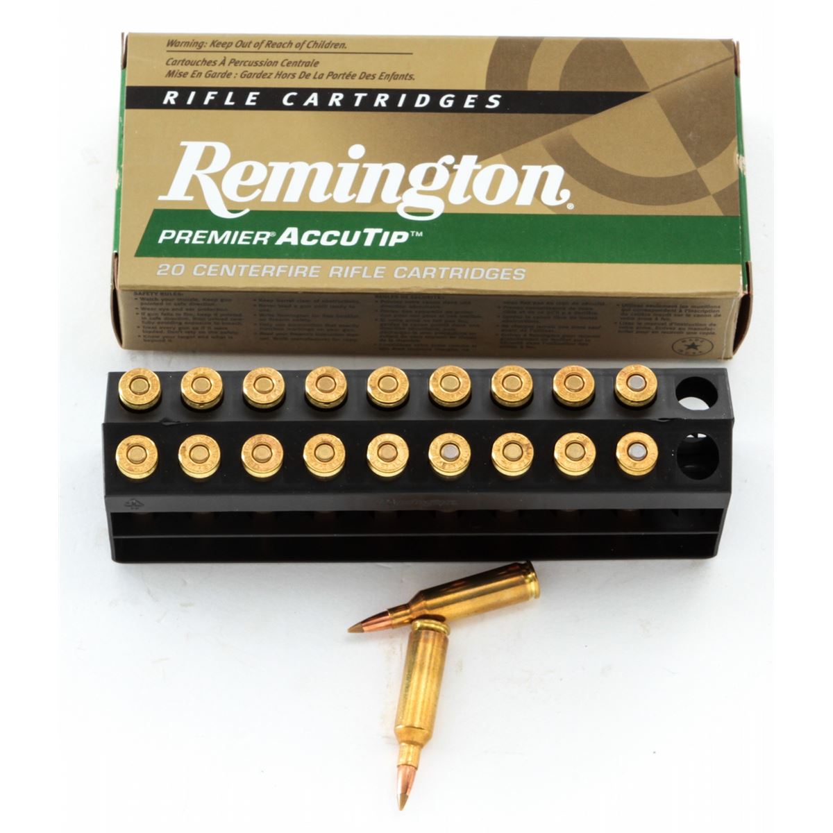 Ammo Lot: 200 Rounds of Remington Premier AccuTip .17 Rem. Fireball, 20 grain AccuTip-V cartridges. Ten (10) 20-round boxes, all brand new in original packaging. Some boxes show light to moderate shelf wear. Retails @ $280/lot. Est.: $150-$250/lot. (Field Time)