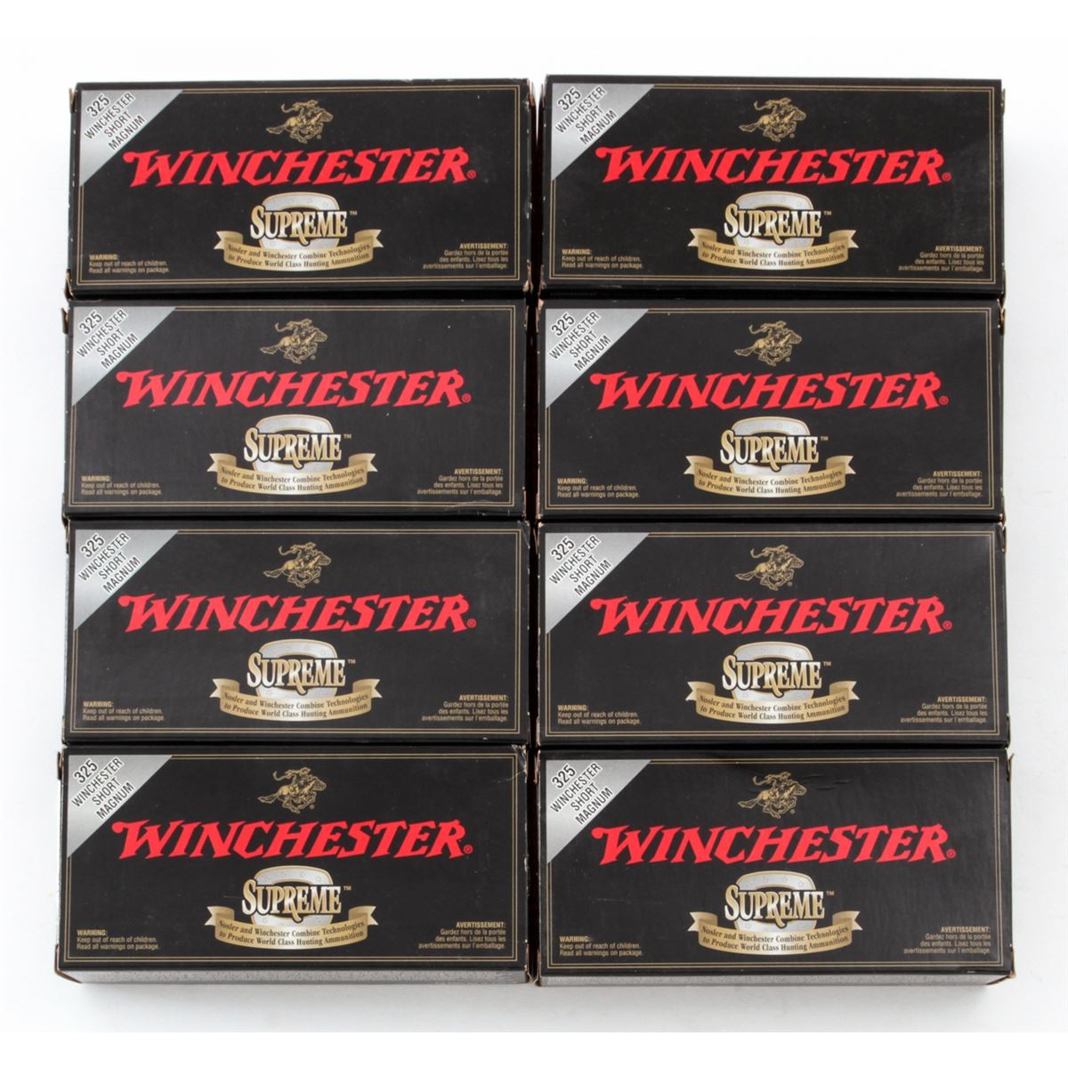 Ammo Lot: 160 Rounds of Winchester Supreme AccuBond .325 WSM 200-grain bonded cartridges. Eight (8) 20-round boxes, all brand new in original packaging. Retails @ $550/lot. Est.: $300-$450/lot. (Field Time)
