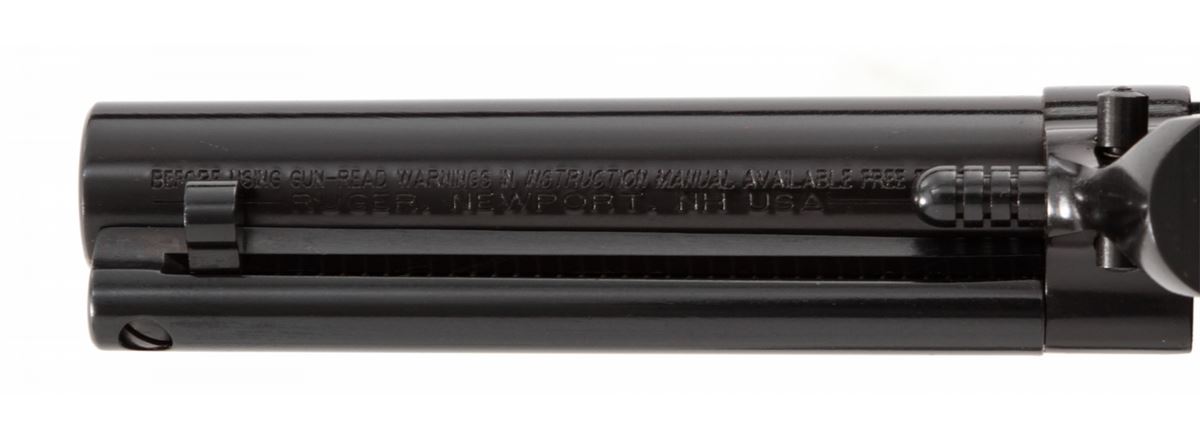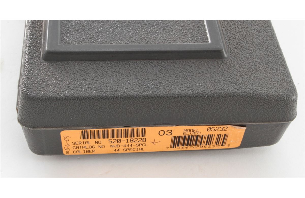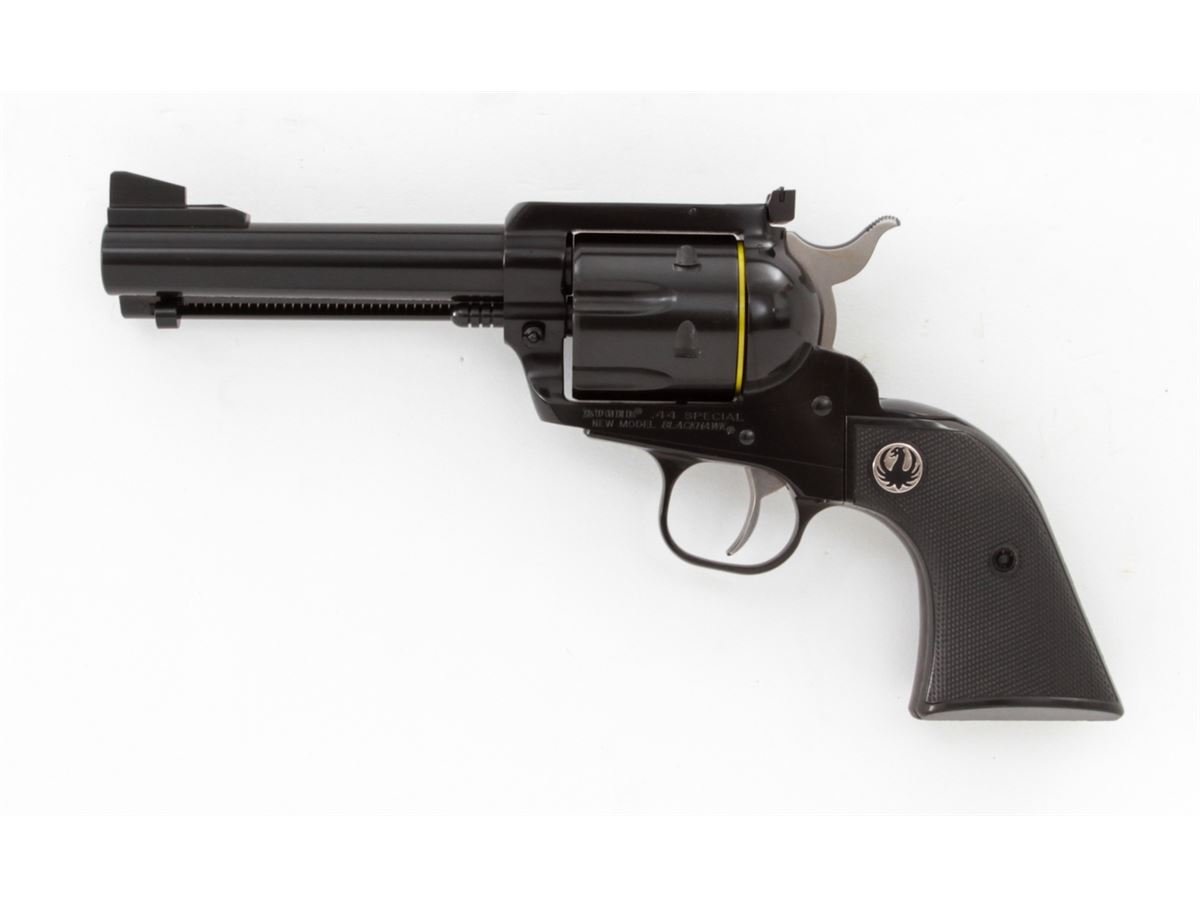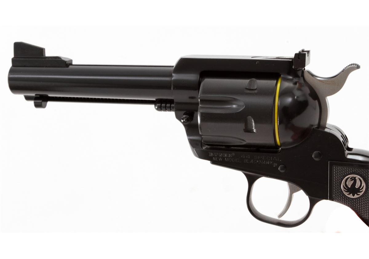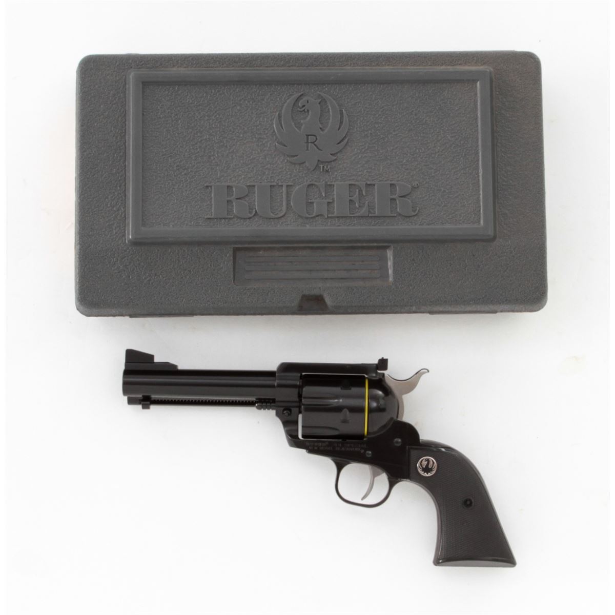 Ruger New Model Blackhawk Revolver, #520-18228, .44 Spec. cal., 4-3/4'' barrel, blue finish, factory checkered black plastic grips. Condition is excellent, appearing near new with light index line, in its original box. Est.: $400-$600. (Modern/PPT)