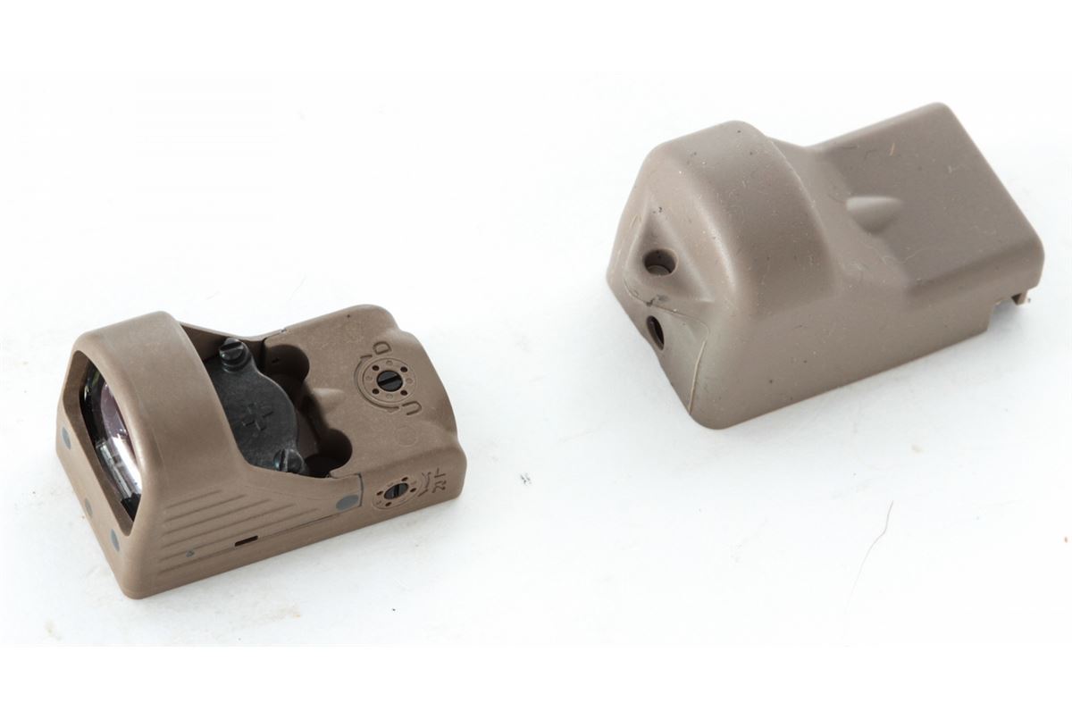 MRDS Miniature Red Dot Sight, with 3.5 MOA red aiming dot, 1 MOA per click windage and elevation adjustment, auto adjust dot intensity, weighing .85 oz. with battery. Brand new in original casing. Retails @ $482.95. Est.: $250-$350. (Field Time)