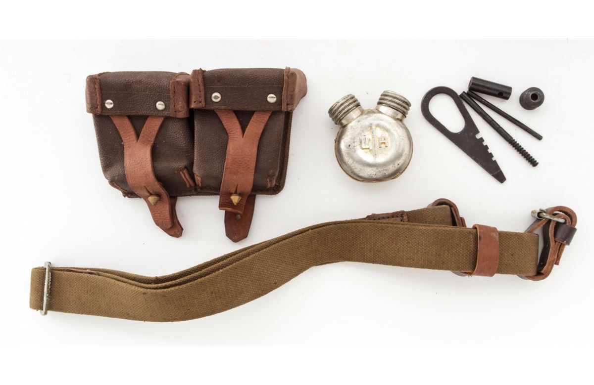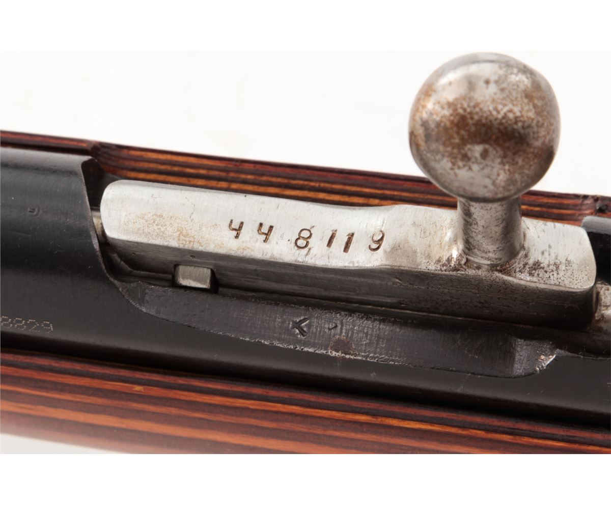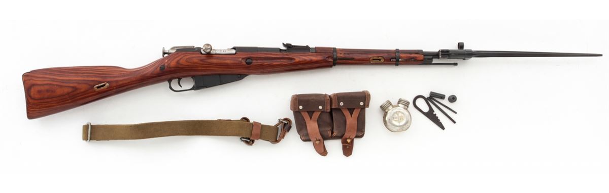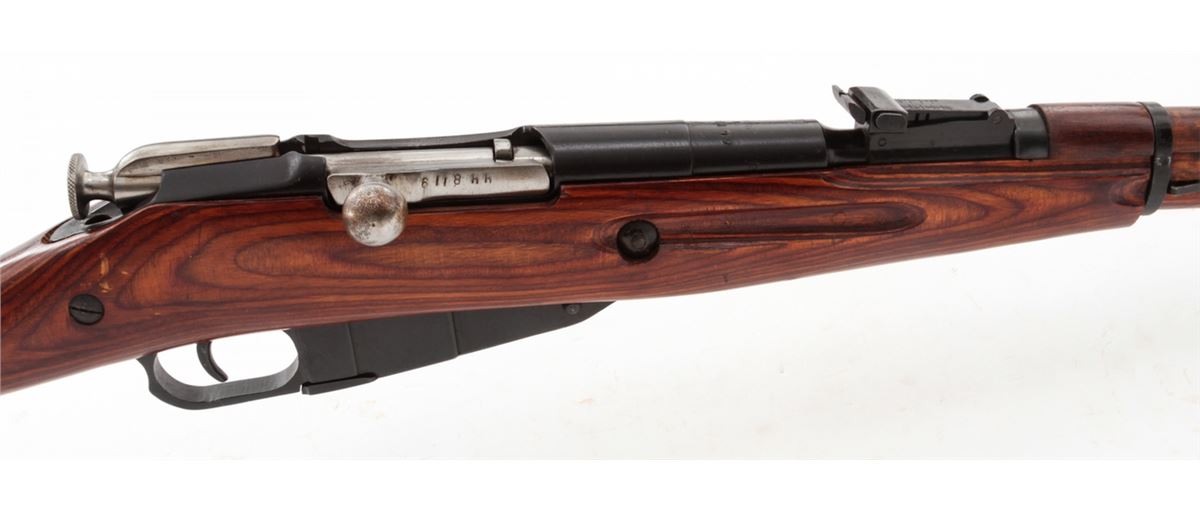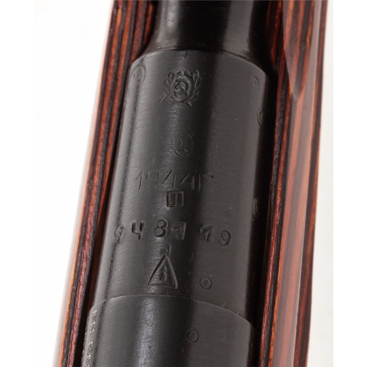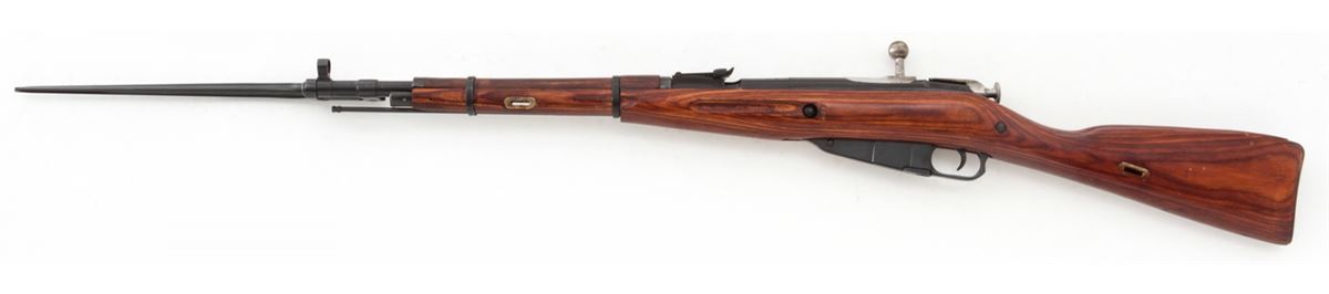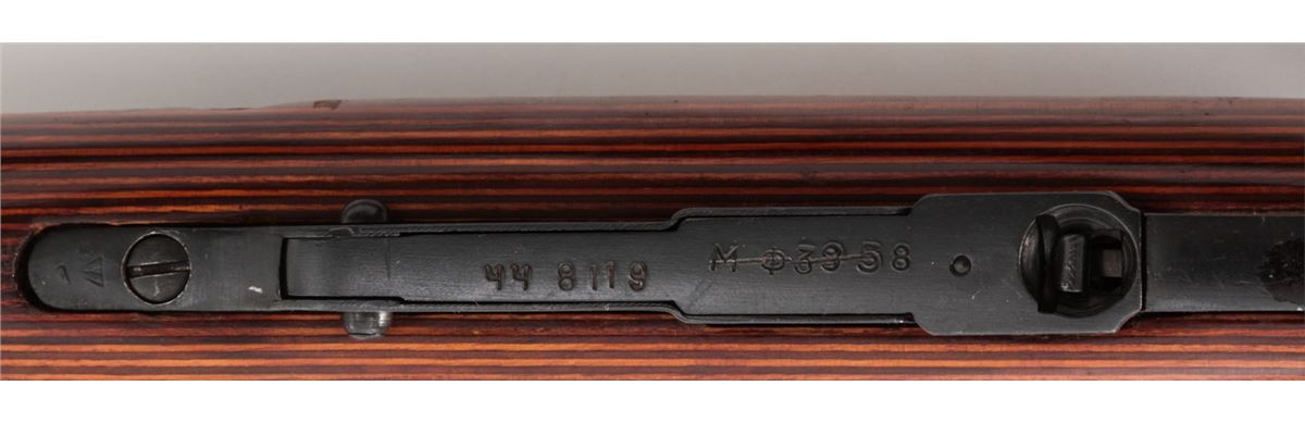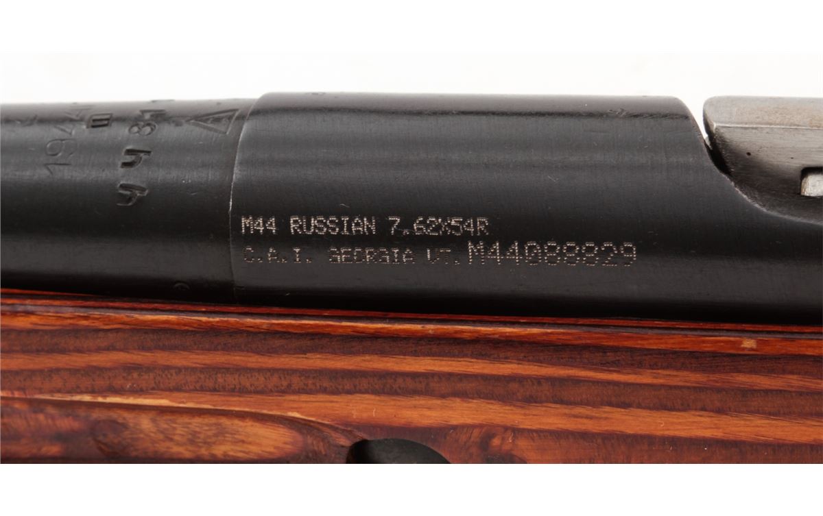 Mosin-Nagant Model 1944 Bolt Action Carbine, #M44088829, 7.62x54R cal., 20.5'' barrel, blue finish, laminated hardwood stock, with sling and cleaning kit. Condition is excellent as imported in the early 1990s. Stock with scuffs to finish. Matching numbered bolt and some mixed parts. Action is crisp, bore is good. Lightly import marked. Est.: $200-$300. (C&R)