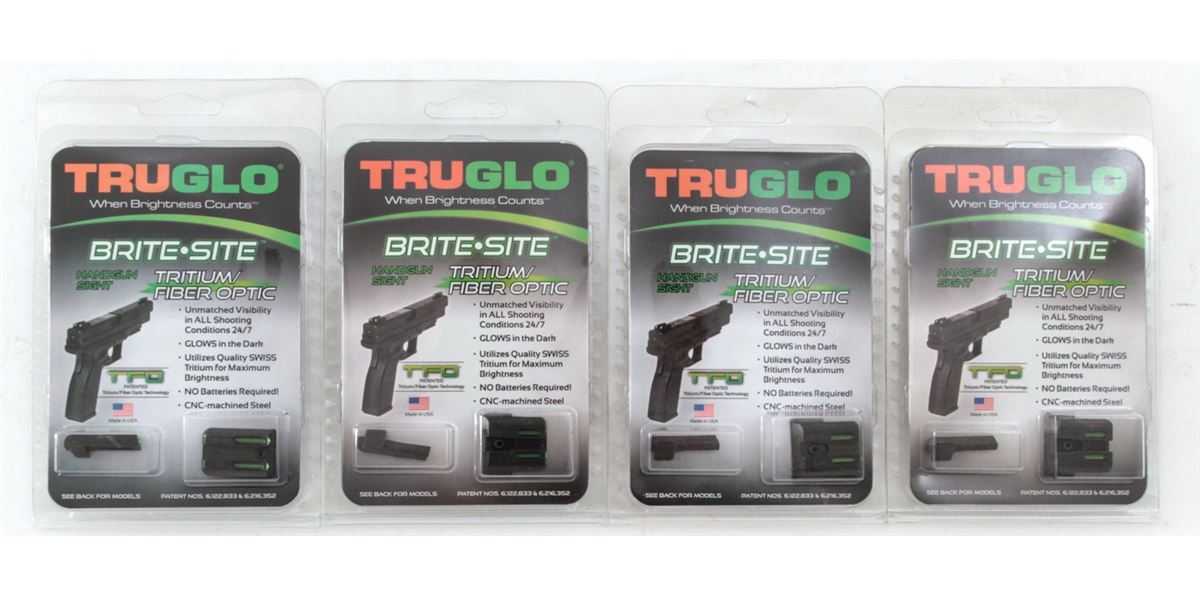 Lot of Four (4) TruGlo Tritium/Fiber-Optic Brite-Sites: (1) Three for S&W M&P, and one for Sig #8 front/#8 rear. All brand new in original packaging. Retails @ over $560/lot. Est.: $250-$350/lot. (Field Time)