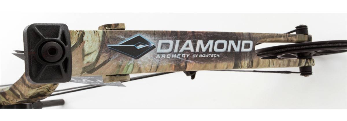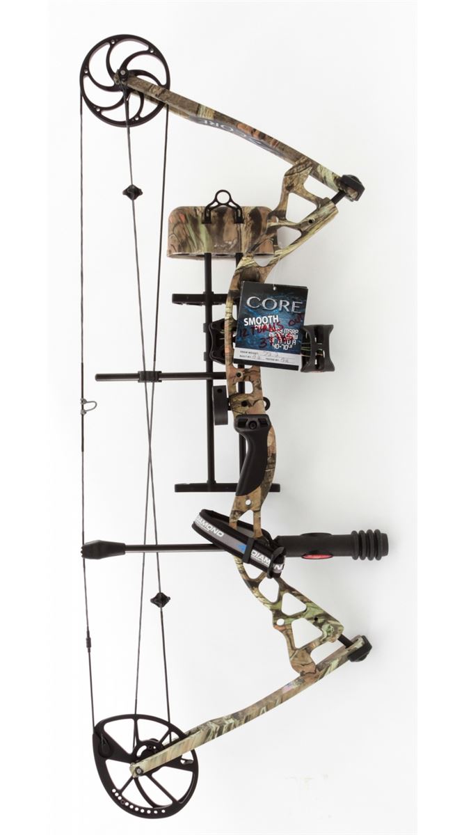 Left-Handed Diamond Core Octane Compound Bow, by Bowtech, camouflage finish, 31'' axle to axle, 25-30'' draw length, 40-70 lbs. draw weight, 7.25'' brace height, 75% let-off, 313 fps, with RAK package and quiver. Condition is excellent, as new with original hang tag. No box. Retails @ $449.95. Est.: $250-$350. (Field Time)
