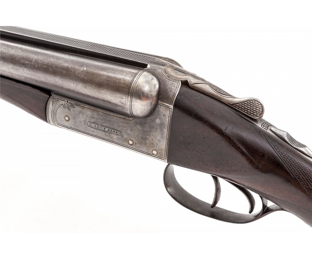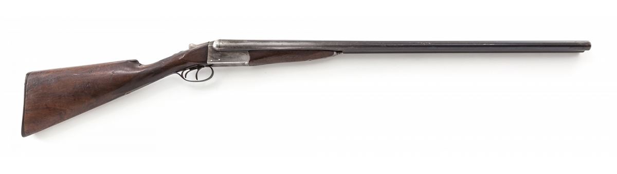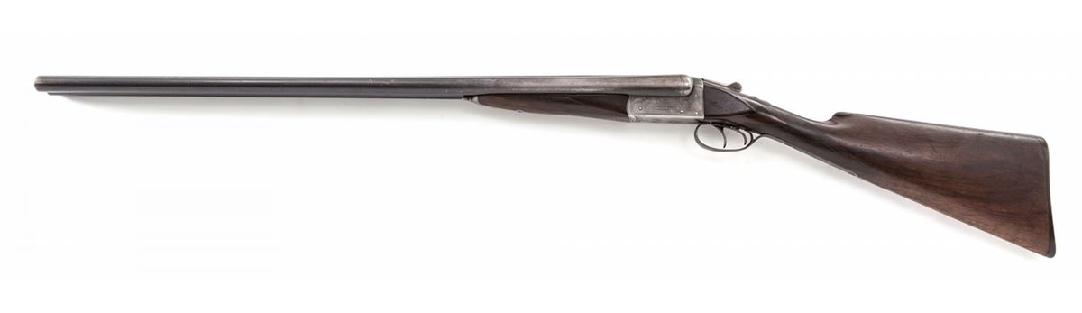 Remington Model 1894 FE Trap Side-by-Side Shotgun, #134072, 12 ga., 30'' barrels choked Full/Full, blue and case hardened finish, straight grip checkered walnut stock and splinter forend. Shotgun features auto safety and ejectors. Top of right barrel marked ''Trap Gun. F Grade''; left barrel marked ''Remington Arms Co., Ilion, N.Y.'' Factory hard rubber buttplate is retained. Condition is very good to near fine. Barrels show approx. 85% thinning blue with most of the losses to rear third. Frame with approx. 35% case colors, mostly in protected areas. Stock shows considerable thinning to checks, especially the forend. Action is good, bores are fine. Est.: $600-$800. (Antique)