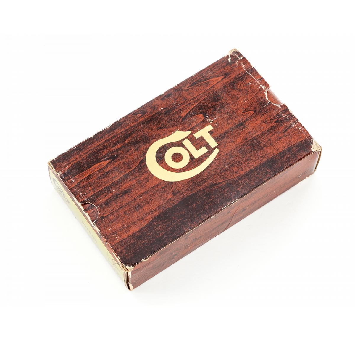 Colt Python Double Action Revolver, #21300E, .357 mag. cal., 4'' barrel, blue finish, factory checkered walnut grips, in original box. Condition is excellent with several very small scratches to right side of frame behind recoil shield. Very light index mark to cylinder. Grips show some flattening to checks to left panel from handling. Action is crisp, bore is bright. Original box with clear matching end label and very light tattering. Est.: $1,800-$2,400. (Modern/PPT)