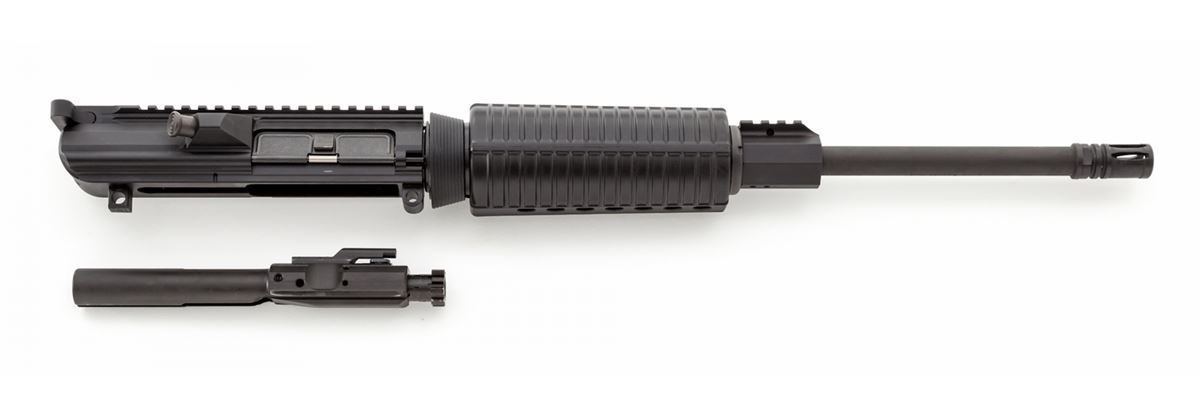 DPMS Oracle LR-308 Upper Receiver Assembly, 16'' heavy contour barrel, with one-in-10'' twist, and A3-style Extruded 7029-T6 aluminum upper receiver with forward assist. Charging handle, complete bolt and bolt carrier, bird cage flash hider, brass deflector, forward assist button, and spring-loaded dustcover. Condition is excellent showing the lightest marks from handling. Currently out of stock with many distributors. Retails @ $729. Est.: $500-$650. (Field Time)