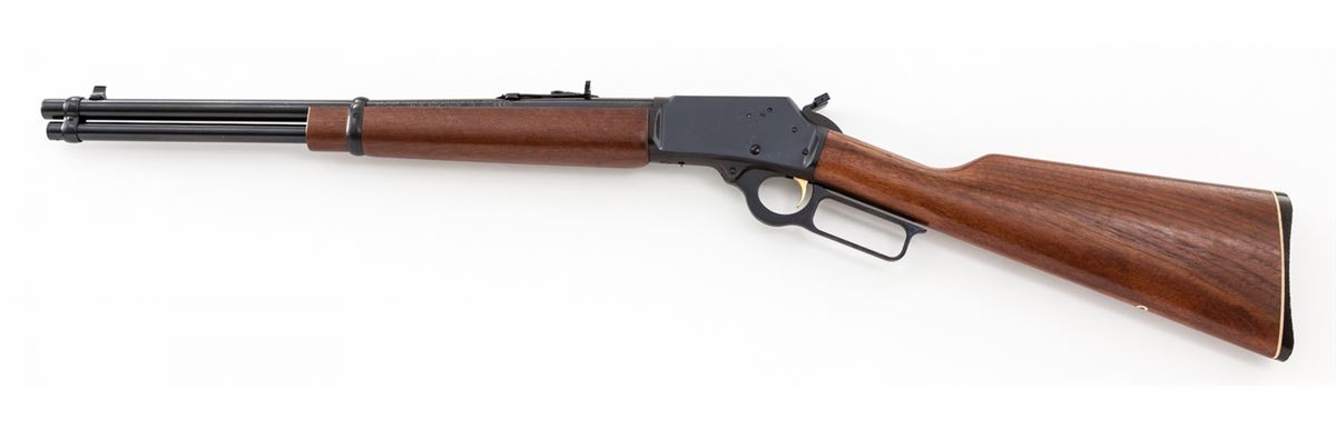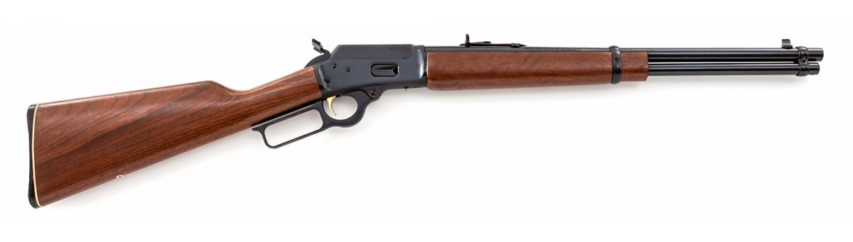 Marlin Model 1894 Lever Action Carbine, #19163884, .357 mag. cal., 18'' barrel, blue finish, walnut stock and forend. Condition is fine to near excellent retaining approx. 97% blue, with light just starting corrosion to barrel. Stock with light handling marks. Action is crisp, bore is bright. Est.: $500-$750. (Modern)