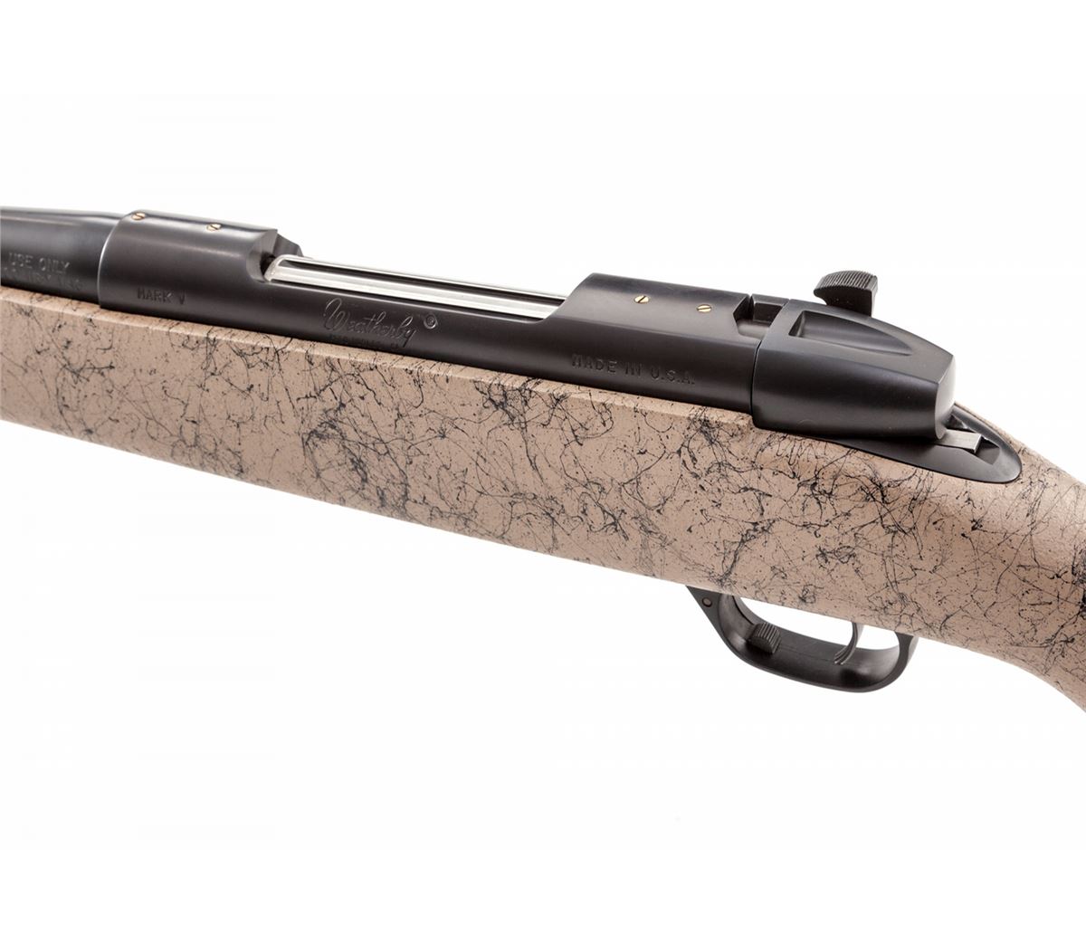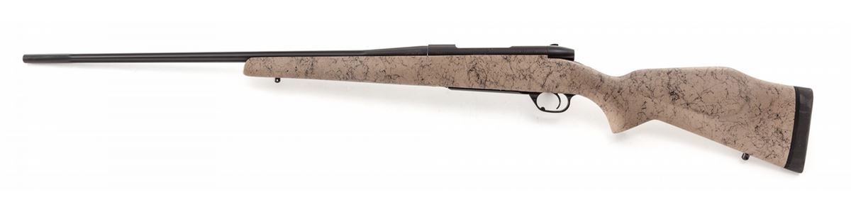 Weatherby MK V Ultra Lightweight Bolt Action Rifle, #PB025464, .300 Wby. mag. cal., 26'' fluted barrel, matte dark blue finish, tan with black accent Monte Carlo composite stock with pistol grip, Decelerator recoil pad and gun lock, with box with matching end label and owner's manual. Condition is excellent, remaining new and unfired. Retails @ $1,869.95. Est.: $1,000-$1,500. (Modern) (Field Time)